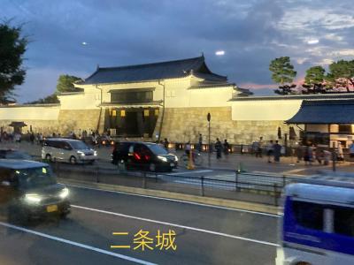 京都市内各方面に定期観光バスが行き来している。私が利用したのは「夏の夕涼みドライブ」で夕方18:00発~19:30京都駅帰着(料金2500円)。見学はすべて車窓からのみ。