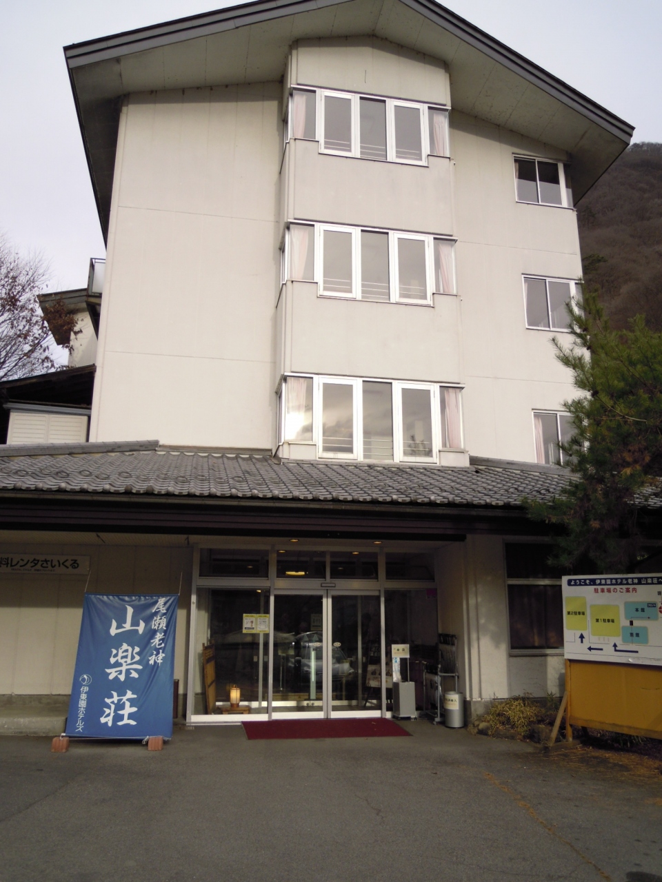 沼田駅から無料送迎バスで約30分。川沿いに佇むホテル。かなりあたこちに老朽化が目立ちますが、1泊2食付(70分飲み食べ経放題)割引クーポン利用で6480円。十分な許容範囲です。