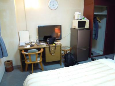 1Fは居酒屋で2F以上がホテルになっている。ごく普通のビジネスホテルでやや古い感じ。でも部屋はツインルームでゆったりしている。風呂・洗面・トイレはかなり狭い。