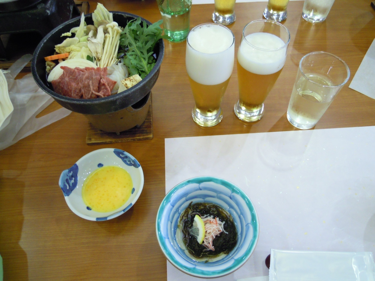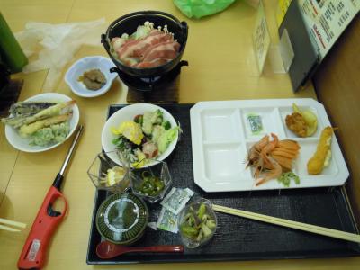 楽しみな夕食はバイキング会場とは別で全14種類の和会席、牛肉スキヤキや豚肉生生姜焼き、お造り、煮物、揚物、お蕎麦などに加えアルコール飲み放題(70分)。伊東園ホテル様様の旅になりました。