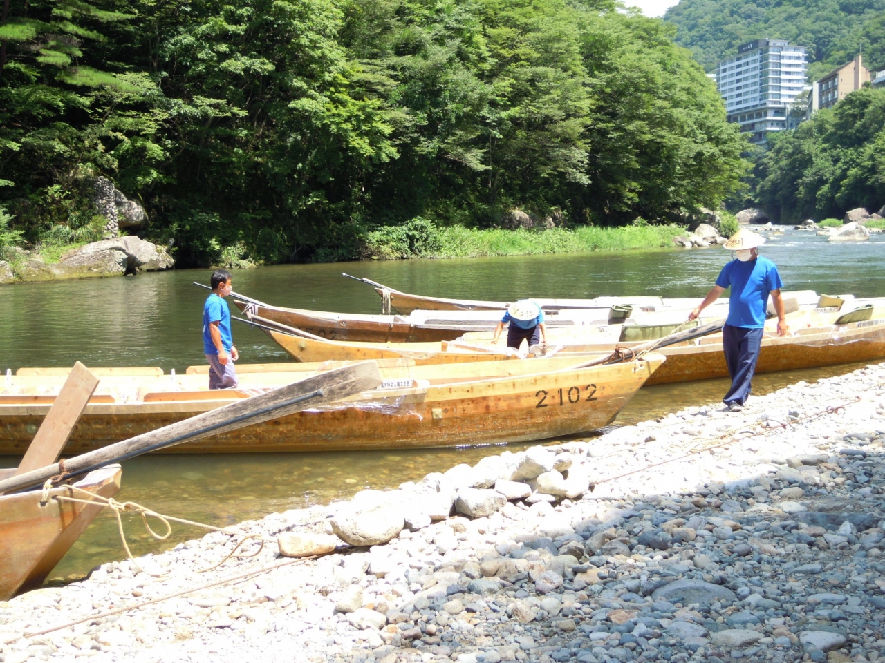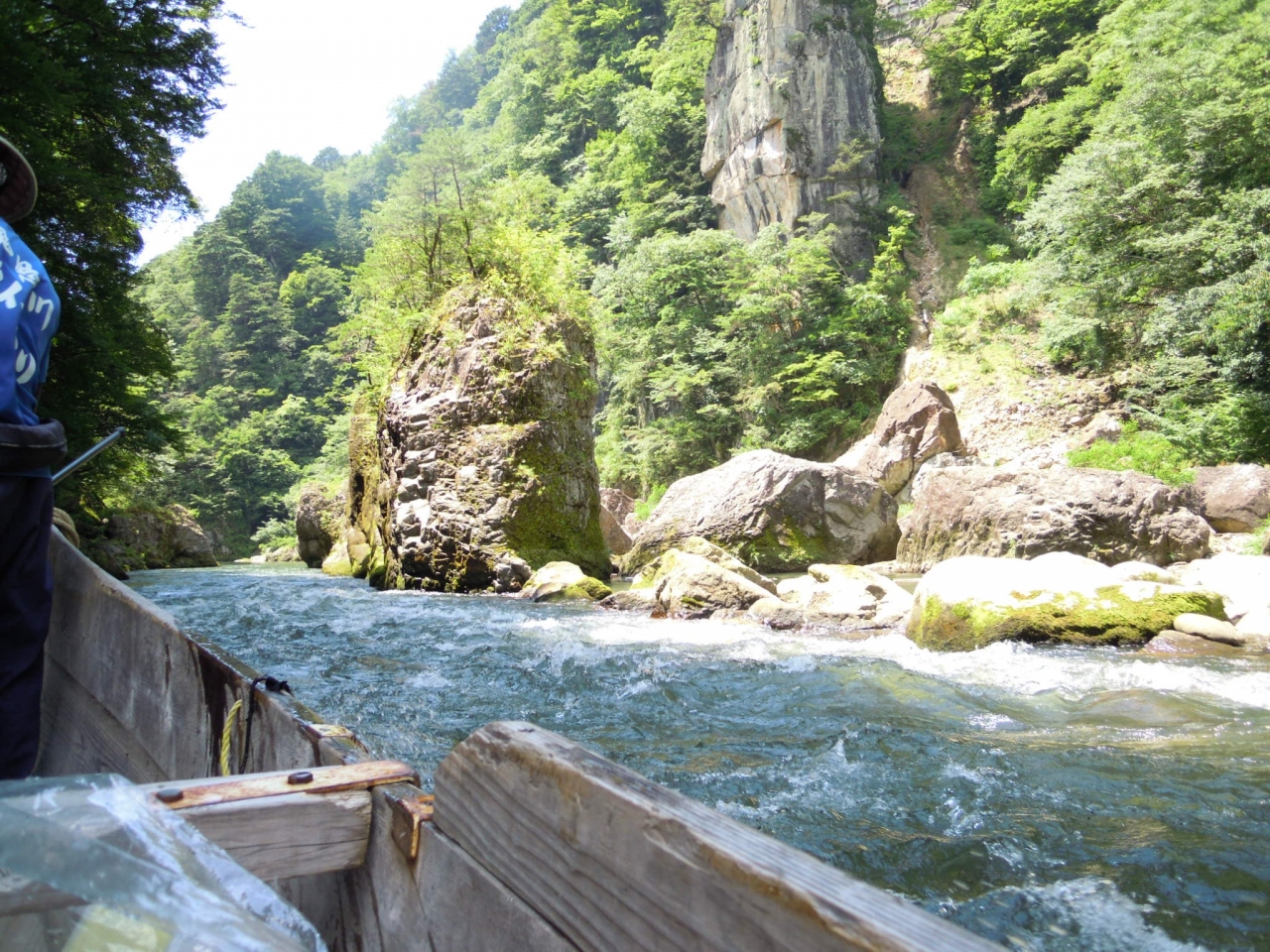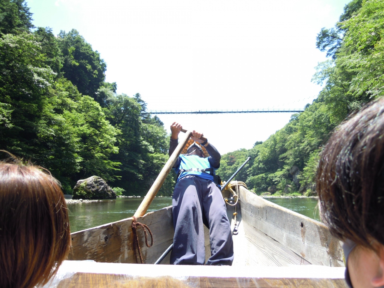 当日は炎天下のもとの舟下りで時折涼しい風が吹いてくれるが、熱せられた船底に接する足はめっちゃ暑い。若い船頭さんの説明を聞きながら奇岩や滝を眺めての舟下りの情緒を楽しめました。15名定員の舟は満席でした。- 旅行時期