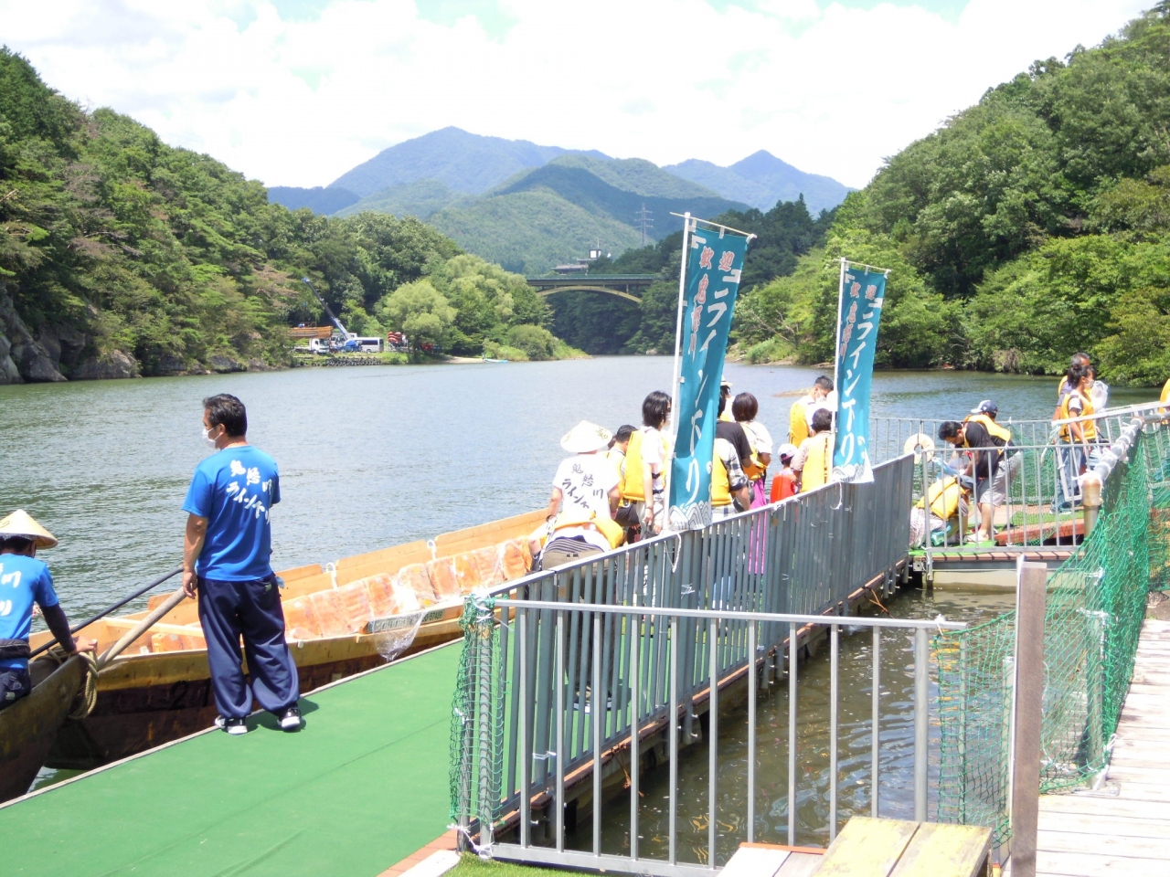 鬼怒川温泉駅からすぐの所に乗船場がある。夏休み中は平日も12本の運航がるようで