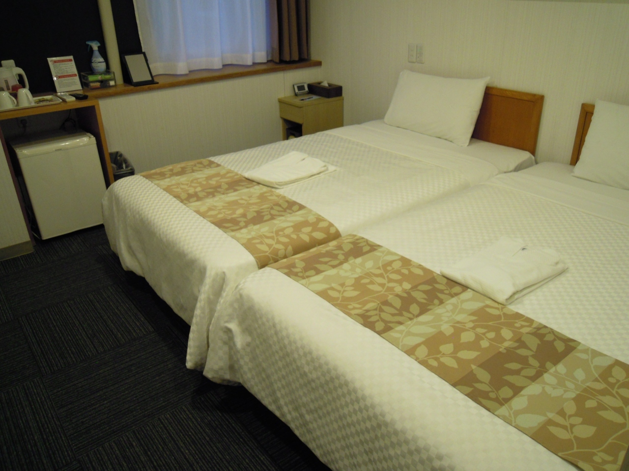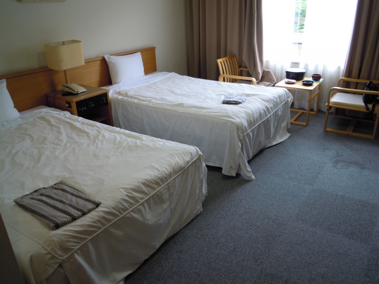部屋は洋室ツインの十分な広さ、清潔感あり。
