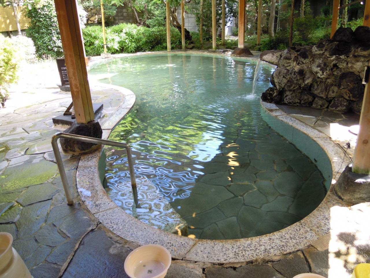 ここは藤館と桜館の2か所の温泉をシャトルバスを利用して入浴できる施設ですが、コロナ禍で当日は桜館は休館でした(残念)。藤館には「文殊の湯」と「薬師の湯」の2か所の野天風呂(野趣風情あり)があり、大浴場も2か所設置されている。