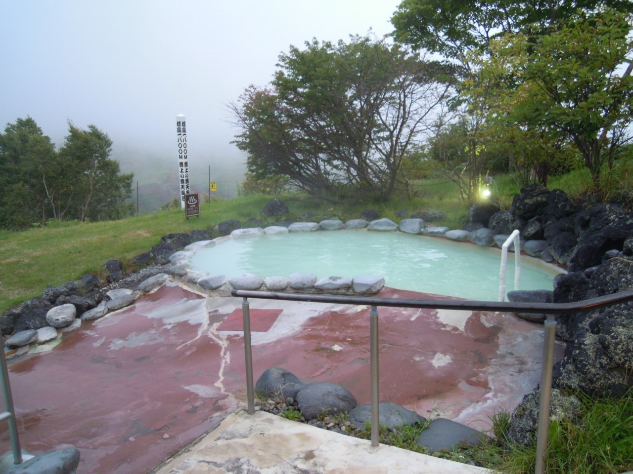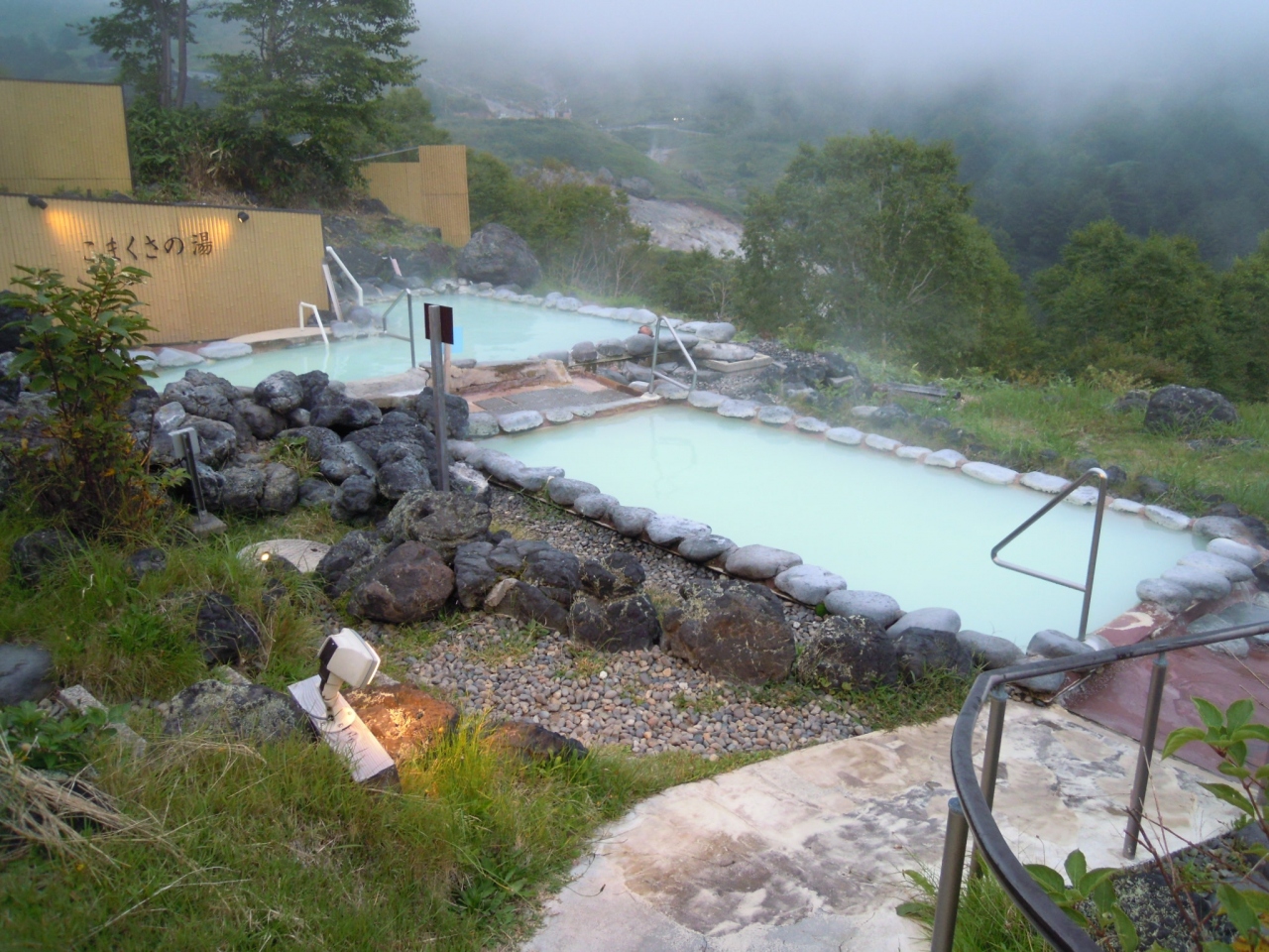 だが、温泉や食事を考えたら結果的には良かったです。何と言っても雲を眼下に朝風呂を堪能、一番奥の「こまくさの湯」は男女共用なので腰巻や水木が必要。乳白色の温泉が心身を癒してくれました。