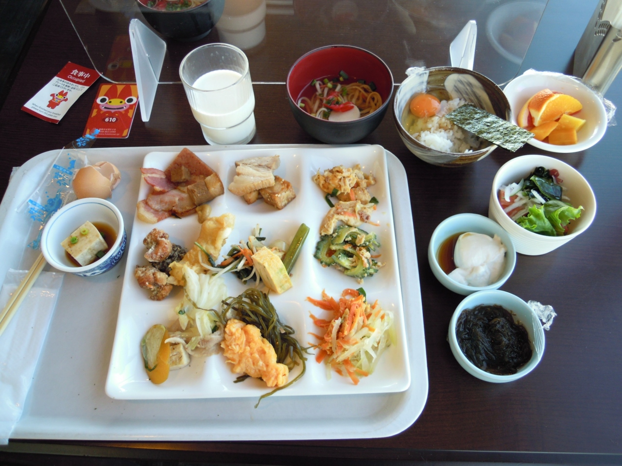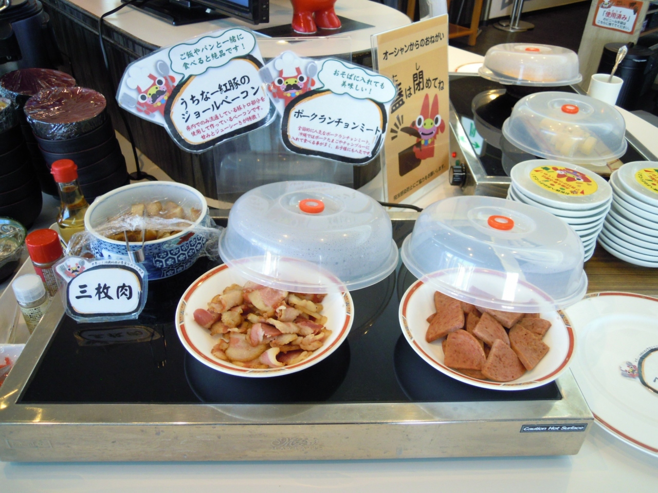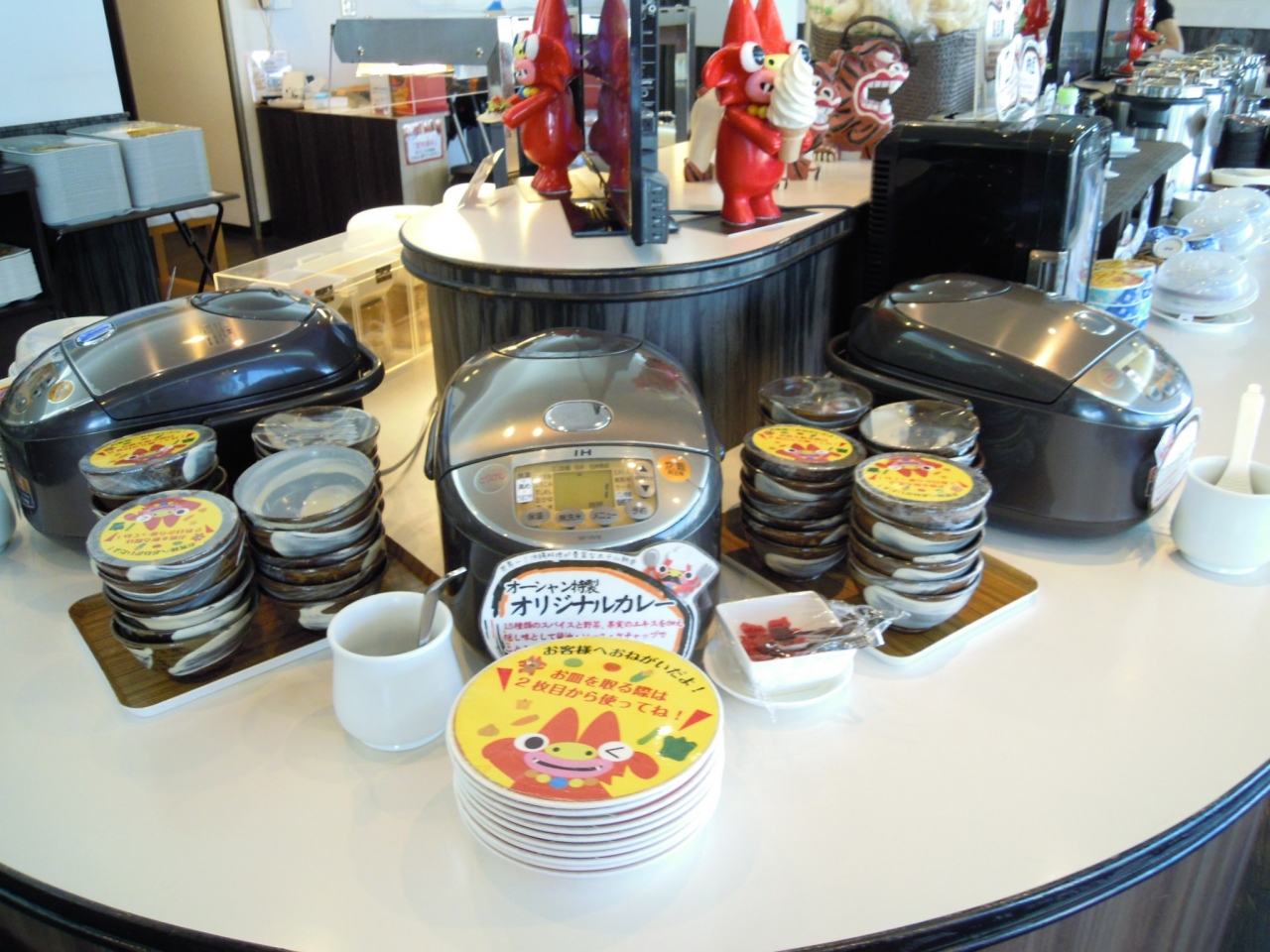 ウェルカムドリンクコーナーや夜、沖縄そばが無料提供。何と言っても朝食は「世界一沖縄料理が豊富なバイキング」と文字通りたくさんの種類の食材を味わえました。