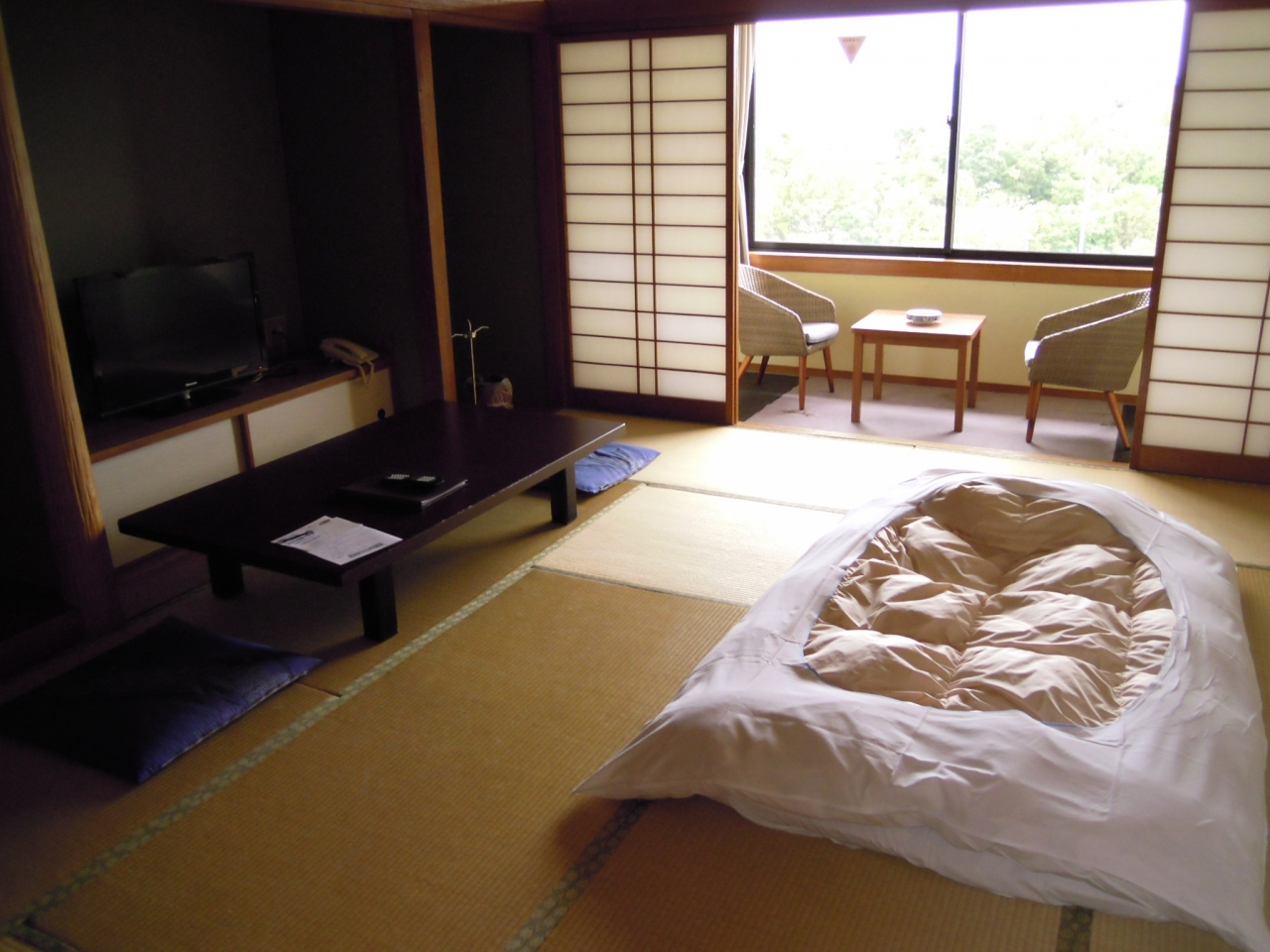 部屋に戻って寛ごうとしたが冷房設備がない。扇風機と送風機だけで体温は下がらない。おまけに布団敷きもセルフ(これは事前に承知していたが…)。