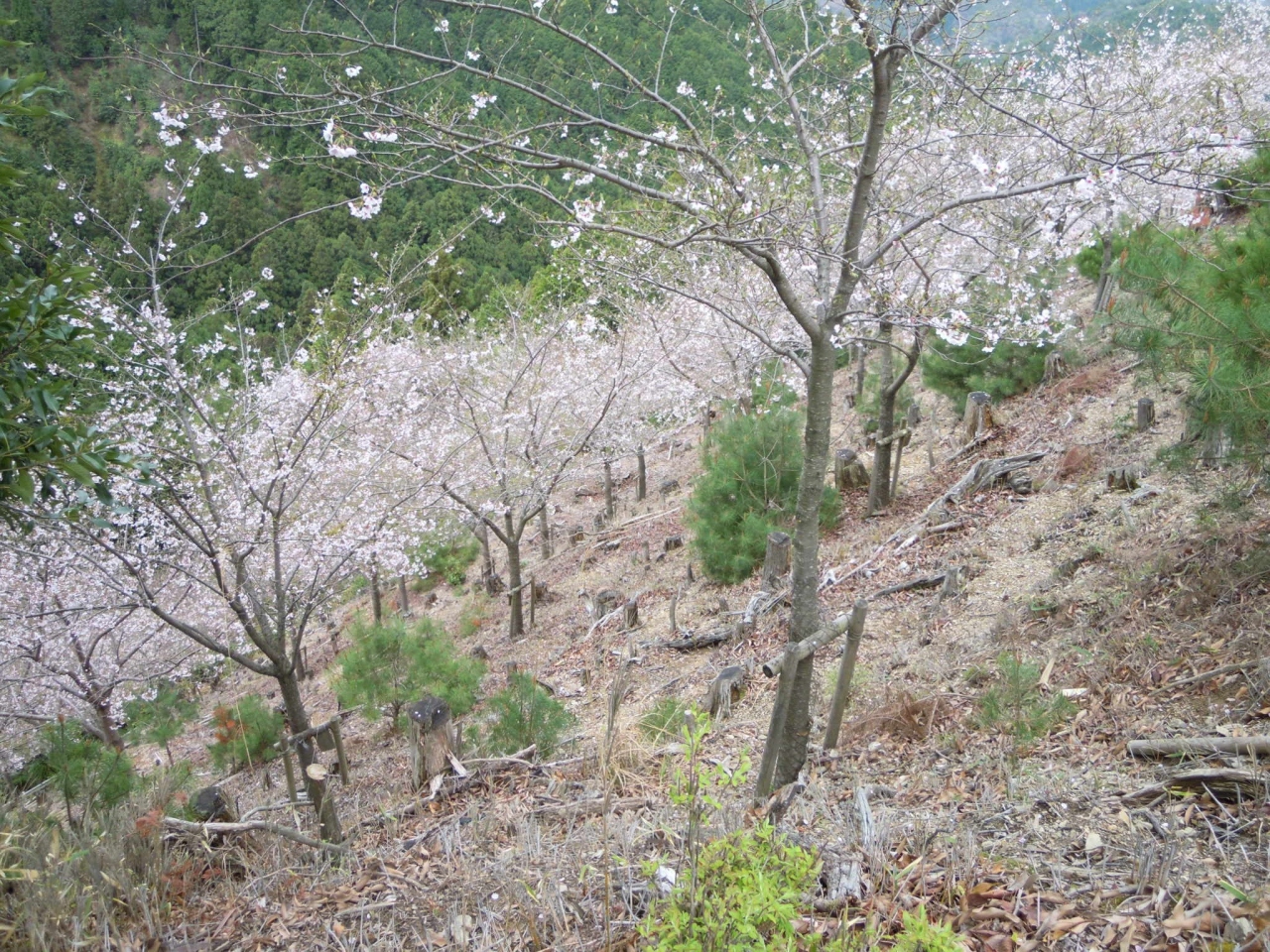 吉野駅から中千本のバスを降りて左手の急階段を登ると奥千本行のバス停があります。