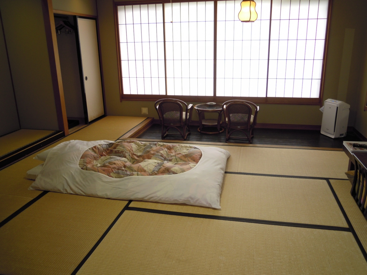 部屋は10畳の和室、一人旅にはもったいない広さ。WIFI・ウォッシュレット・製氷機完備。これで2食付8250円(ポイント利用で6950円)と格安でした。- 旅行時期
