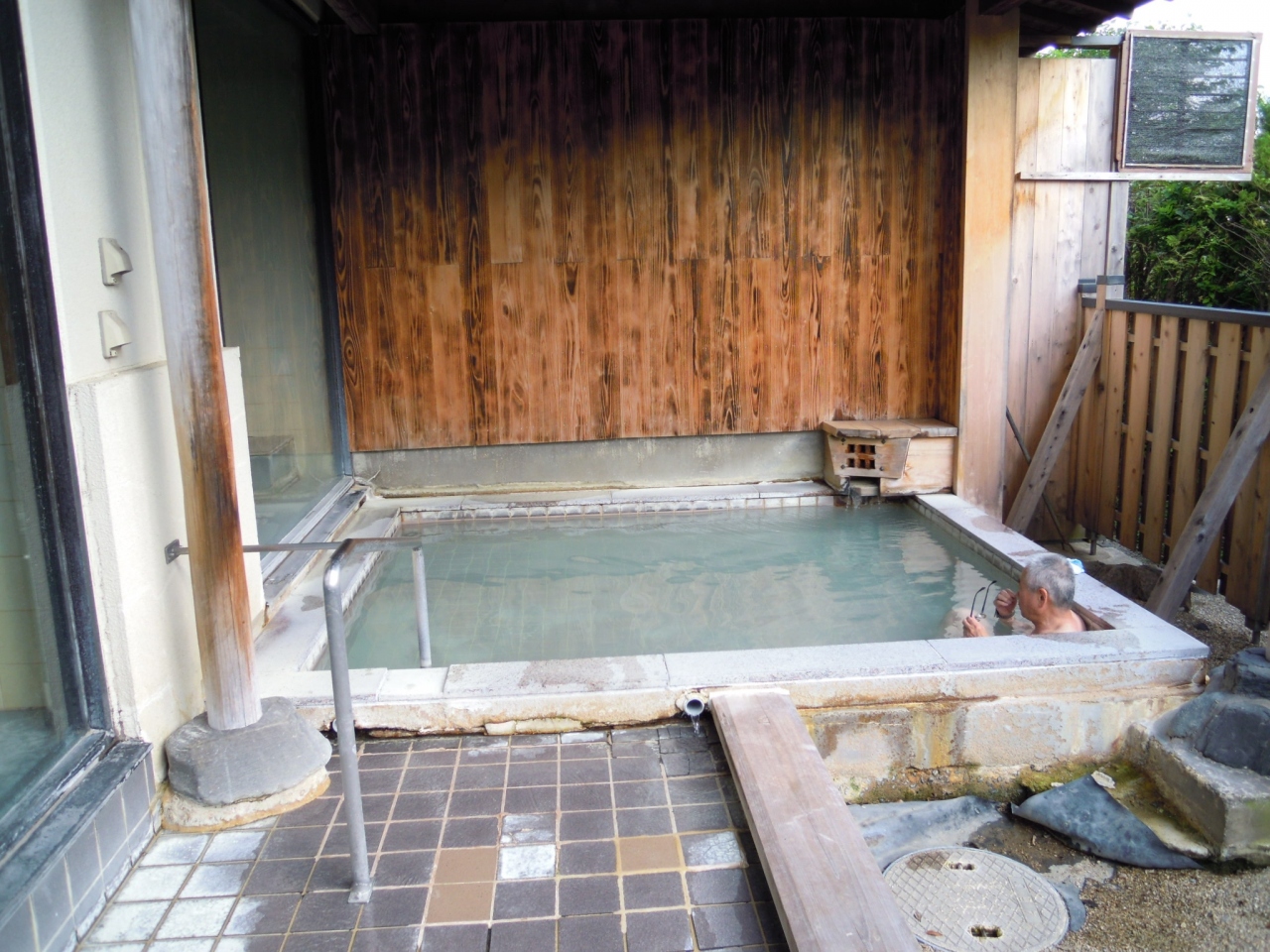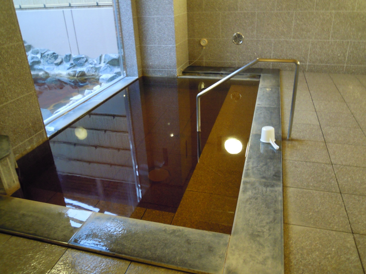 温泉は大浴場と岩風呂の露天風呂が設置されている。無色透明ながらも硫黄泉のため水面は乳白色で、気分的に臭いも感じられた。