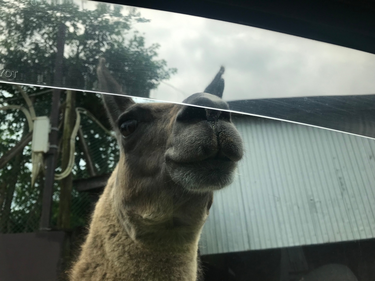 ゆっくりゆっくり園内をまわることができる。ライオン以外の動物には車の窓を10cmほど開けてやることができる。我々は餌を購入しなかったんですが、動物たちは餌を貰えるものと窓の上部やサイドミラーをベトベト舐め舐めされた。車が来ても道を開けるそぶりも見せず、間近で動物の顔を眺めることができ迫力満点でした。