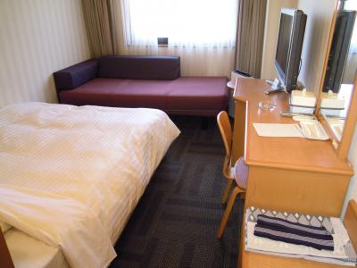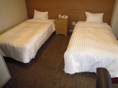 天然温泉大浴場(知床の湯)・露天風呂は茶褐色(チョコレート色)のモール温泉で肌はつやつや。部屋はツインルーム19㎡で広さは十分。