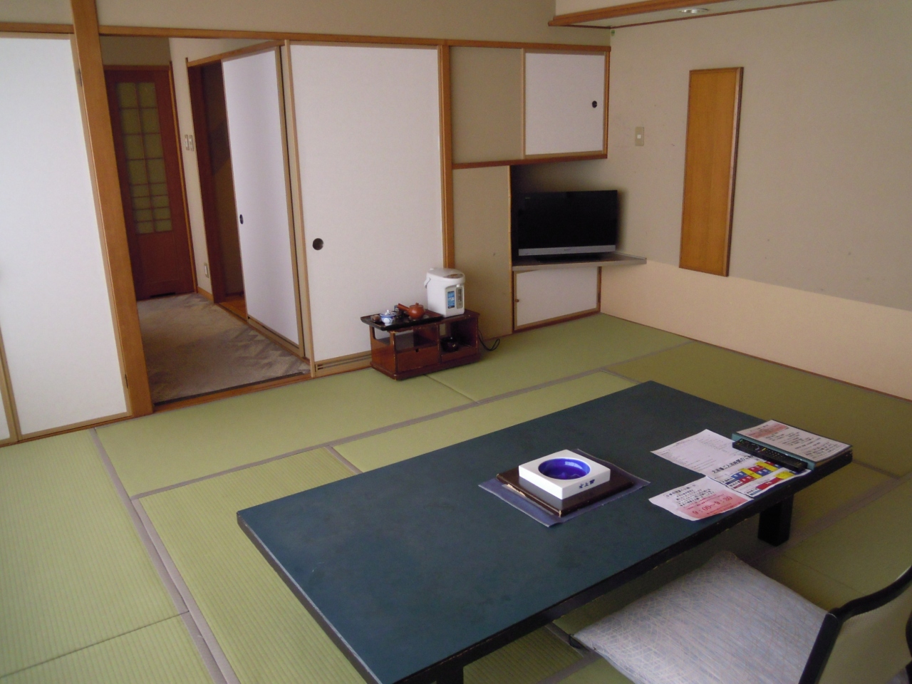 部屋はお任せタイプでしたが、広い和室と別室には応接セット4人分が設置され、男一人旅にはゆったりできるスペース。