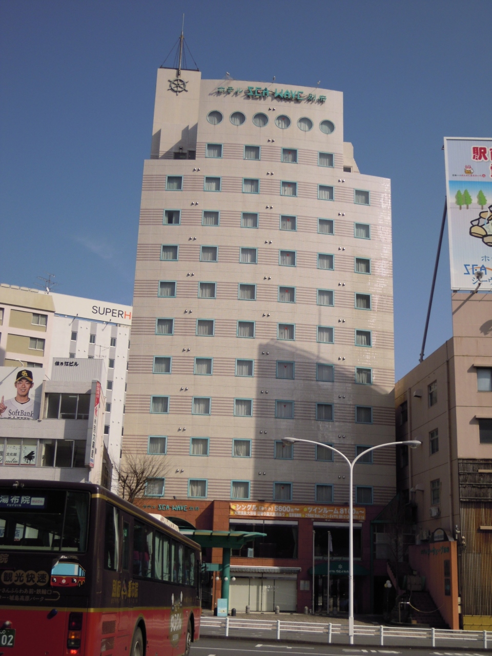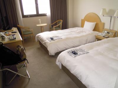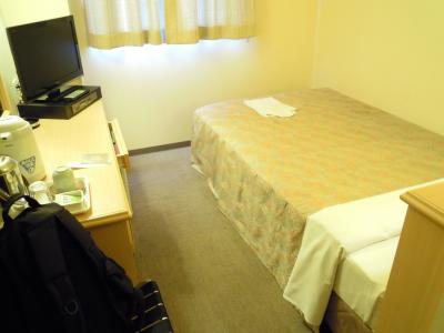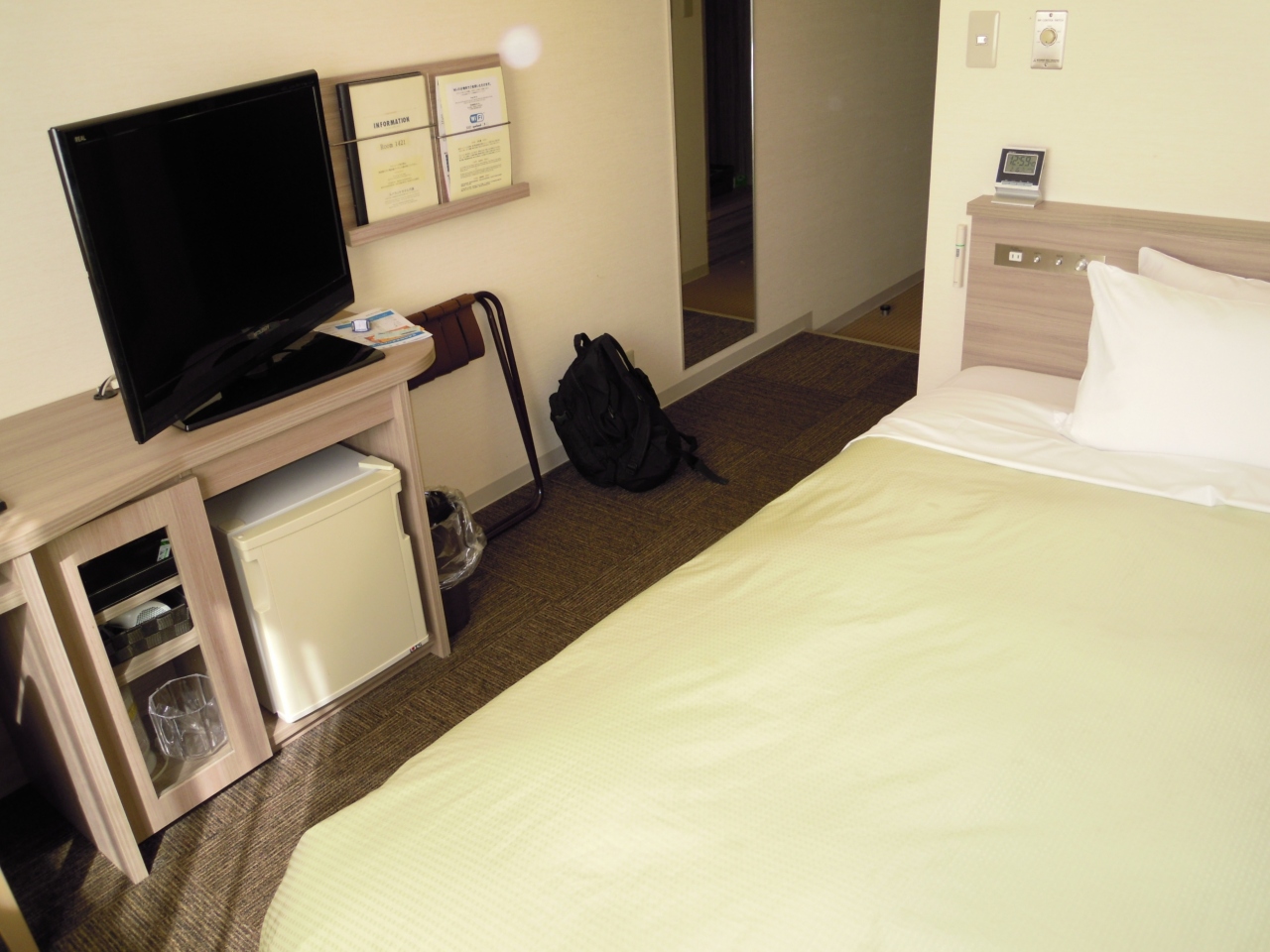 部屋はシングル洋室11㎡のダブルベッド仕様、したがってごく普通のピジネスホテルである。ホテルには温泉大浴場がないので近隣のホテル3カ所の温泉施設が無料で利用できるサービスがある。- 旅行時期