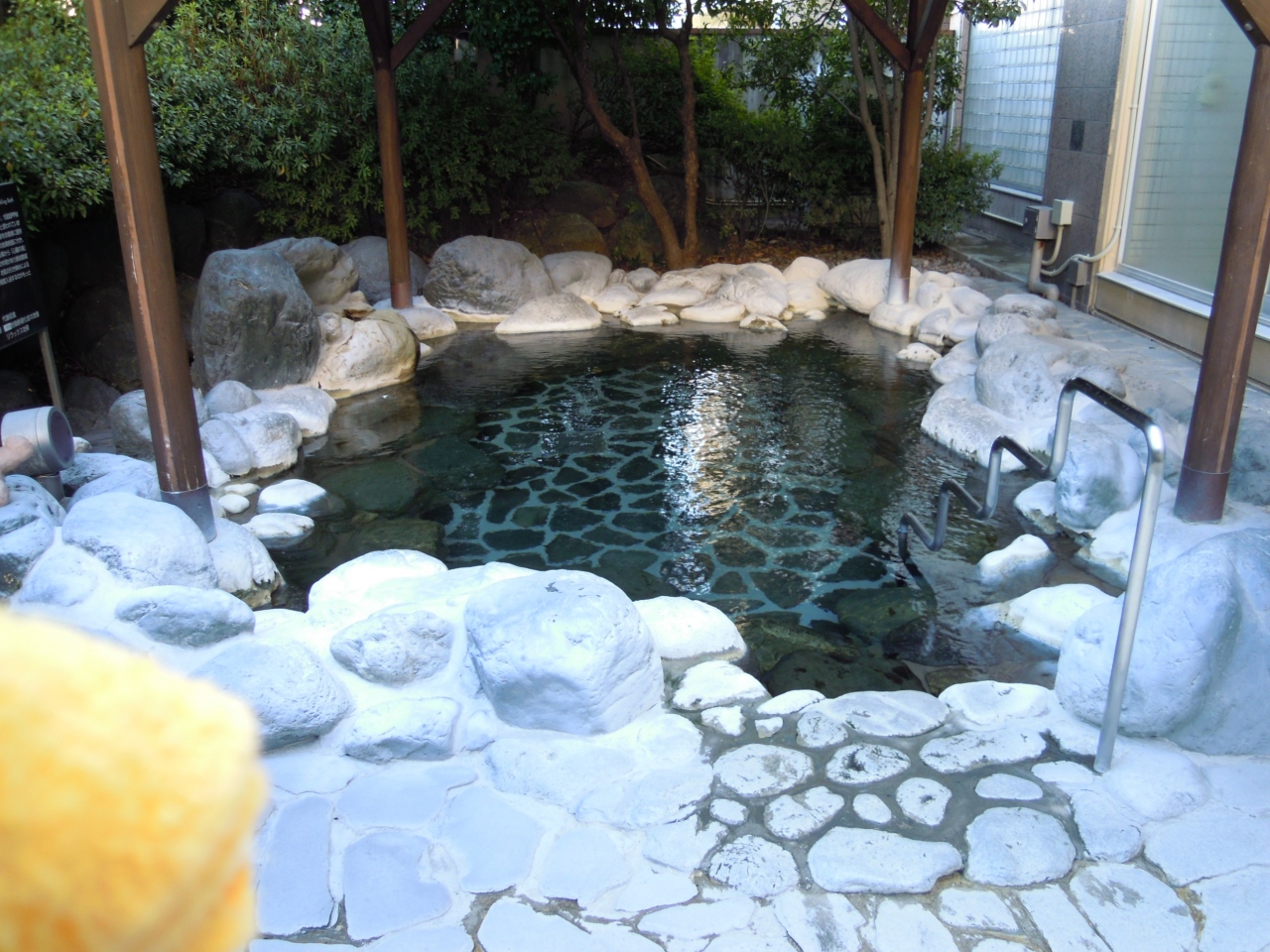 日帰り入浴客もちらほらいましたが、早速お風呂へ。大浴場には6~7種類(ワイン風呂あり)、露天風呂には3種類の湯船(低温と適温)が完備されている。客も少なくゆっくり温泉を楽しめました。アメニティも揃っていて助かりました。