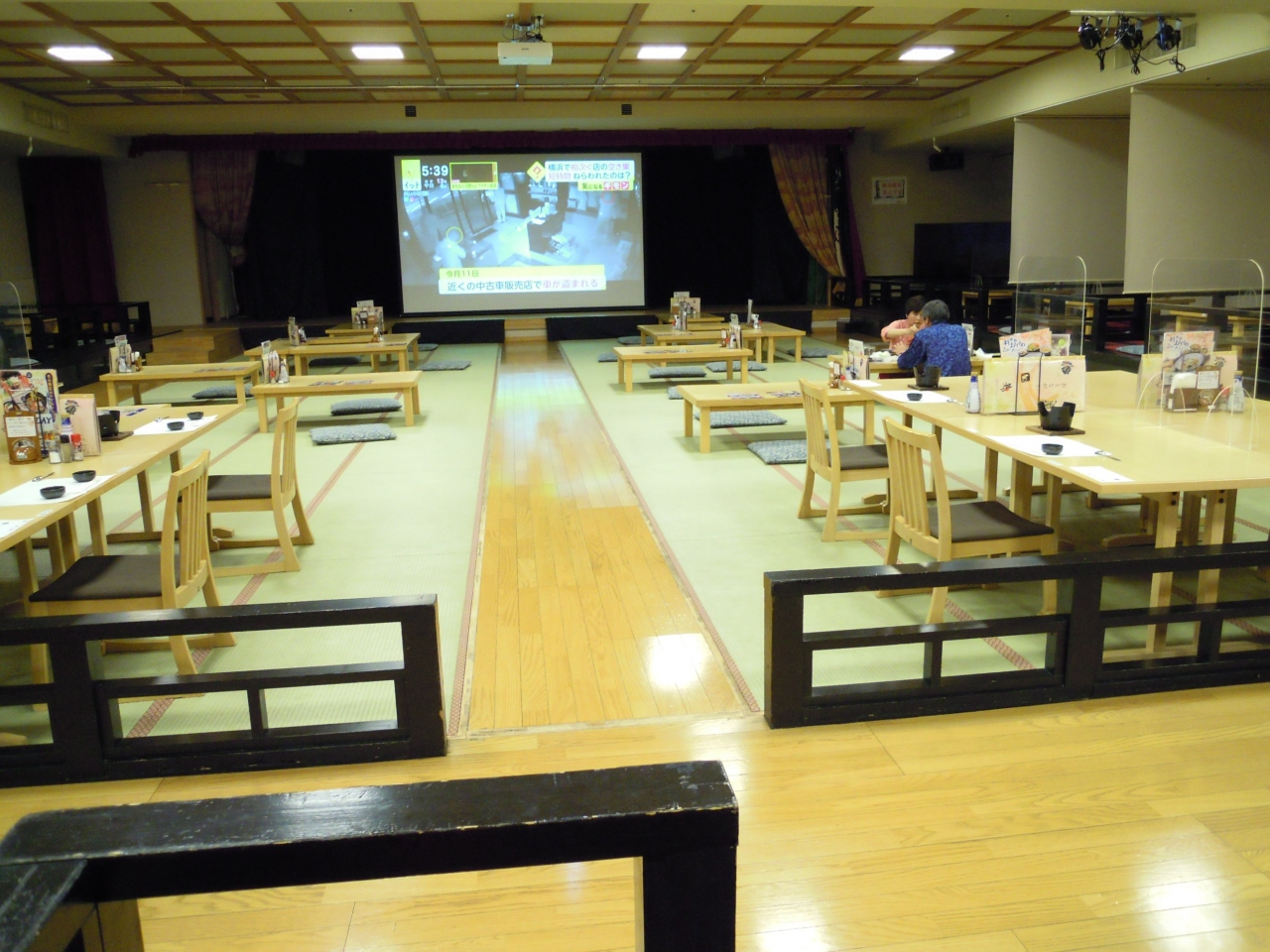 夕食は大広間の完全独立したテーブルでの和食会席、お造り・すき焼き・サケホイル焼き、他質量とも大満足でした。