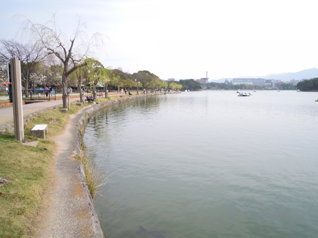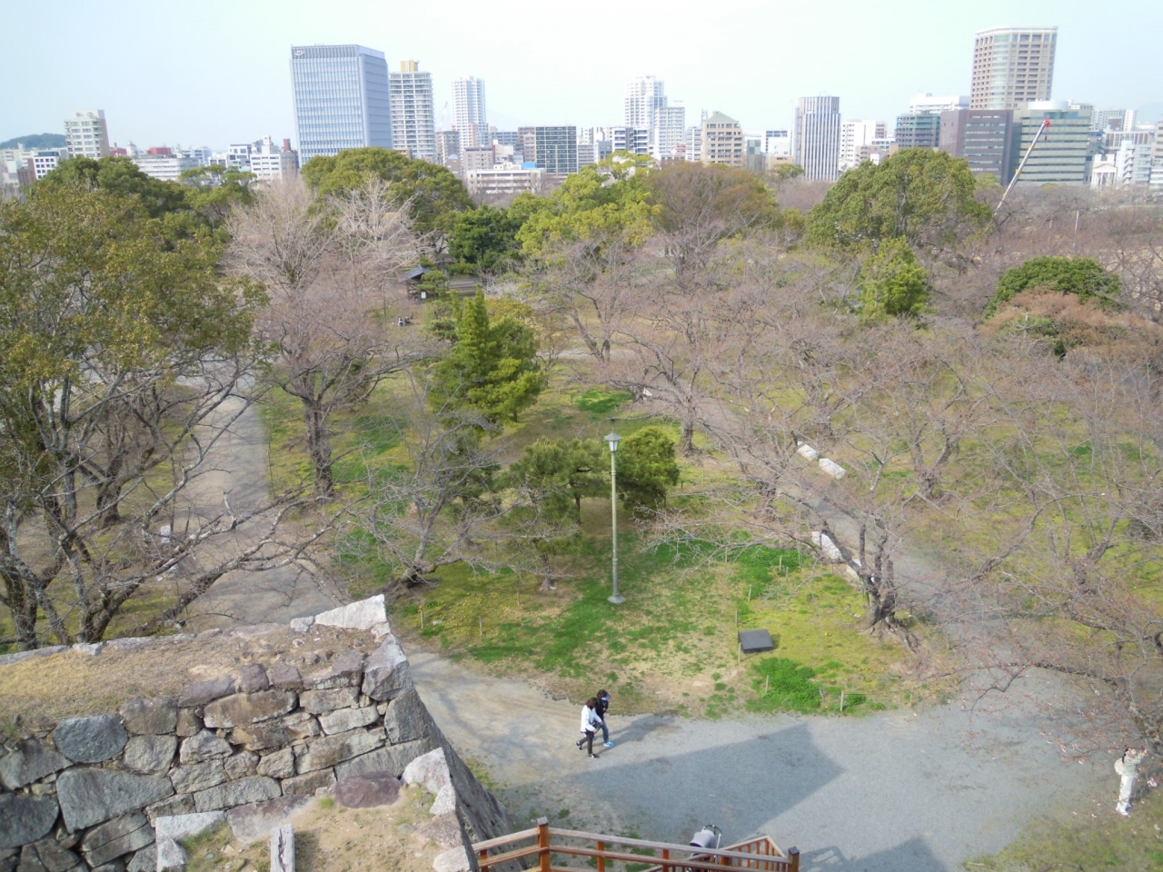 大濠公園を通り過ぎて、左に曲がると城への登竜門が見えてくる。道路を渡り平和台陸上競技場を左に、そして舞鶴公園の中の緑豊かな憩いの場を進むと天守台跡があり、そこを上がると大濠公園や福岡タワー、福岡ドームなどが見渡すことができます。