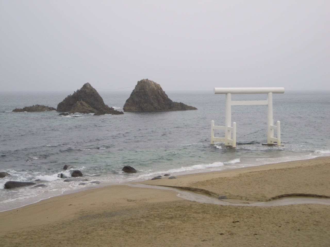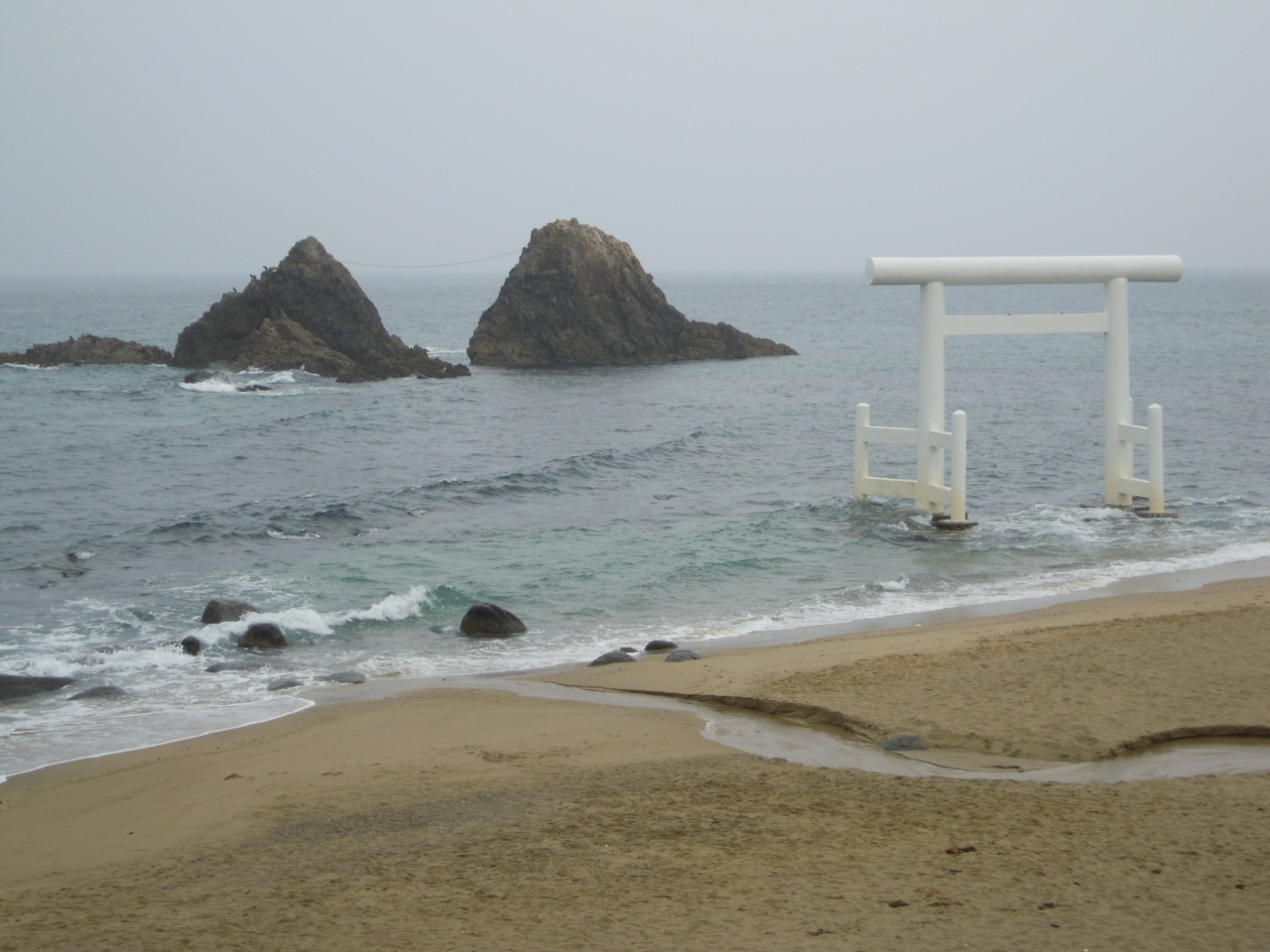 三重県の二見ケ浦と同じく案内板には「志摩桜井二見ケ浦」と書かれて、真っ白い鳥居が印象的でした。- 旅行時期