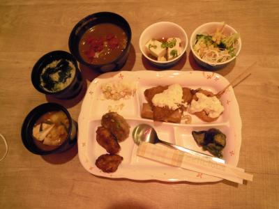 夕食は「素朴なお弁当」ながらも質・量とも満足できる料理でした。- 旅行時期