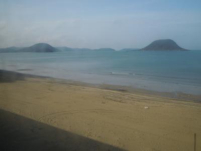 JR筑肥線・筑前前原駅でレンタカーを借りてナビされながら初めての道を強風と雨の中を走って行った。現地では人っ子ひとりおらず、強風雨で傘も役立たずただただしばしその絶景を眺めていた。