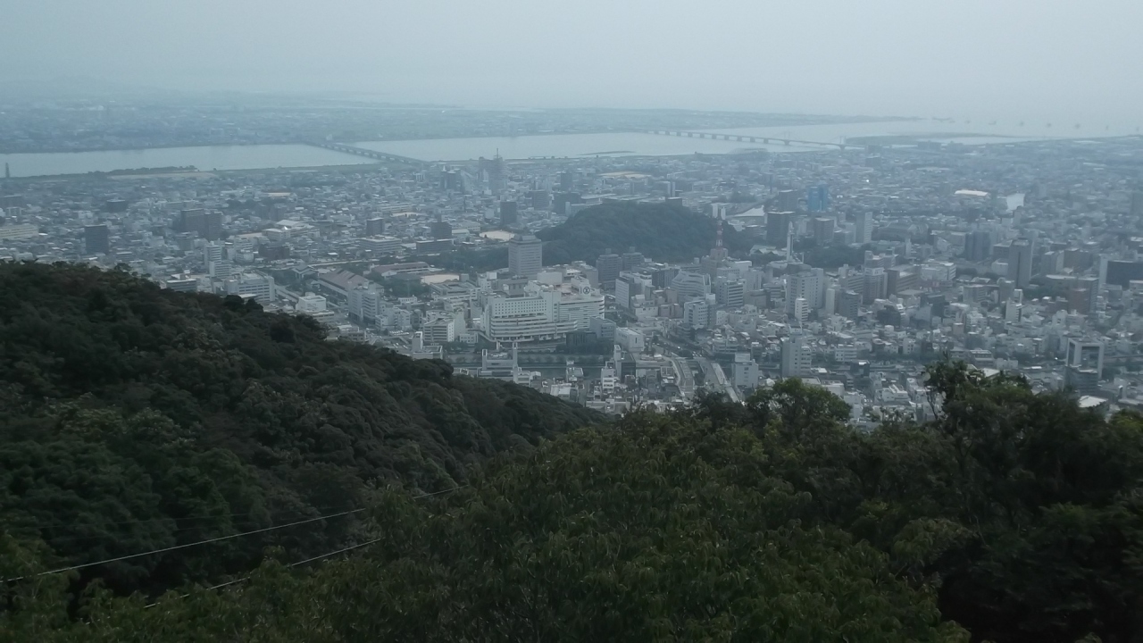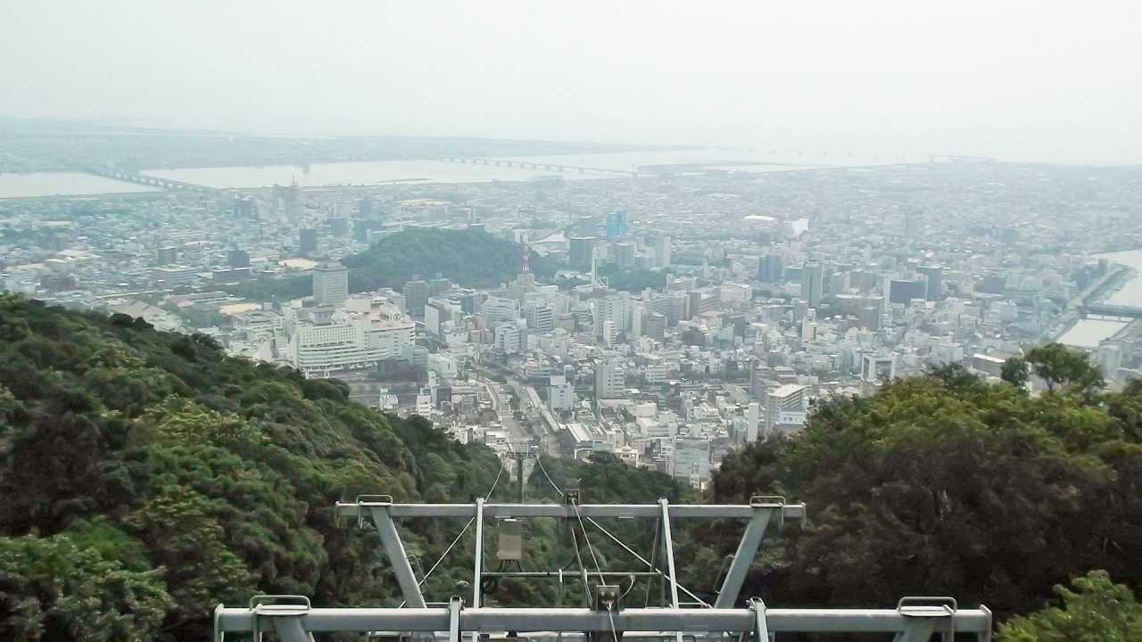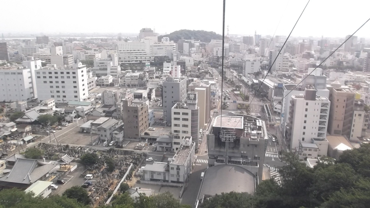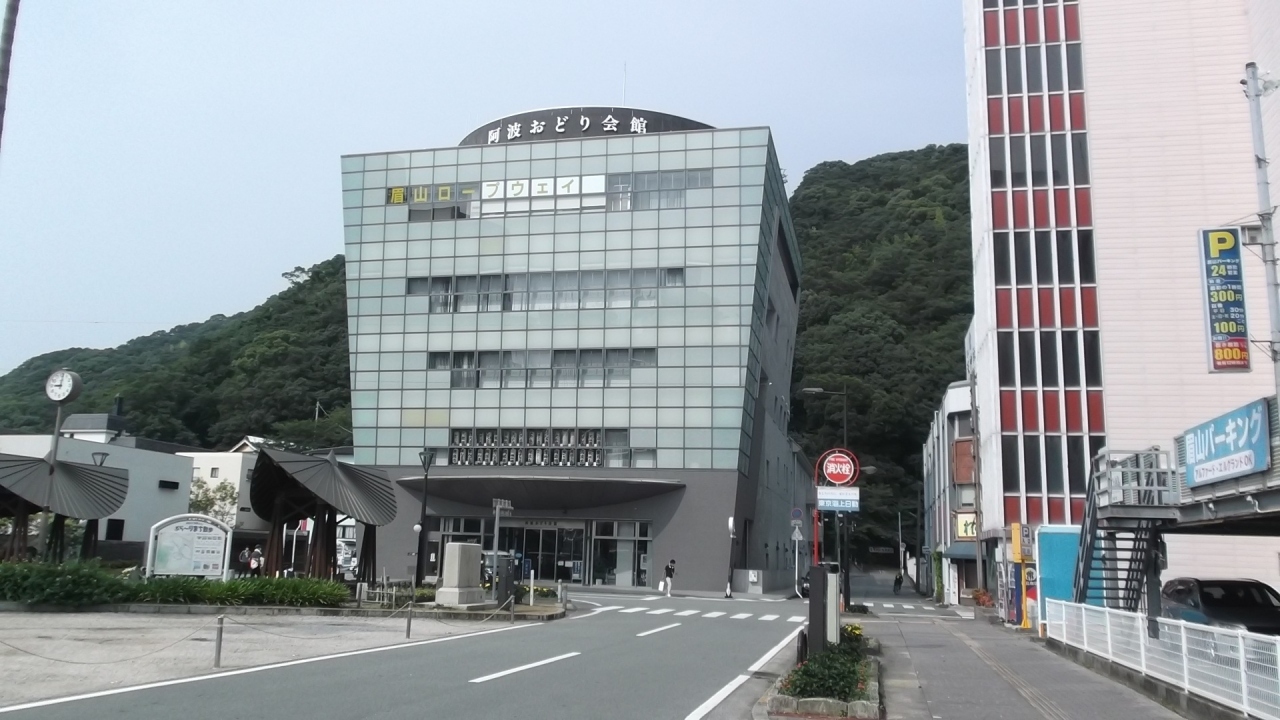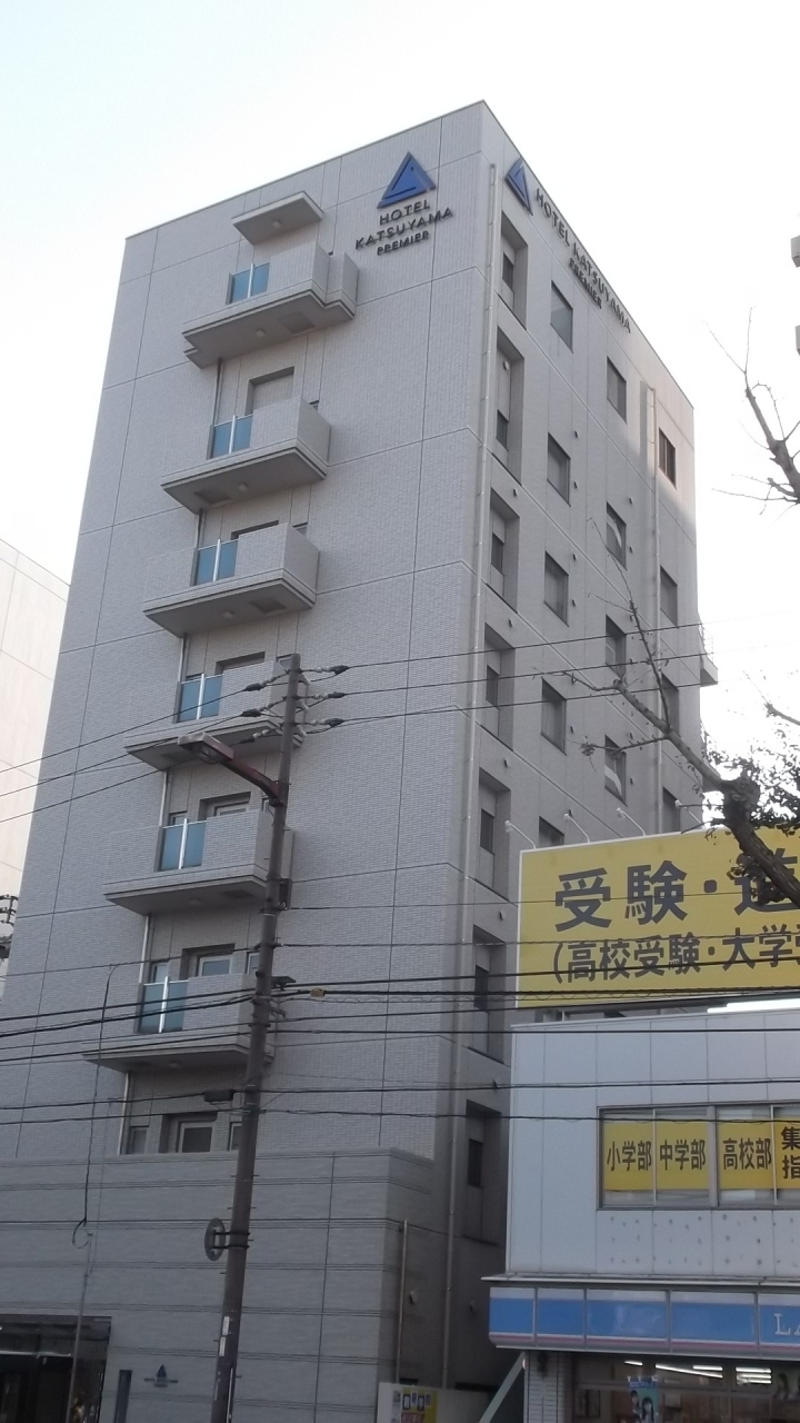 JR松山駅から伊予電鉄道後温泉行、勝山電停下車徒歩5分。ホテル勝山Premierに宿泊。
