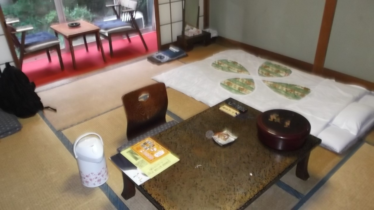 飯坂温泉駅徒歩2分程度。道路左側に昭和レトロな旅館が目に入ってきた。かなり老朽化していて心配でした。和室8畳で部屋は薄暗い。冷房・冷蔵庫は完備。