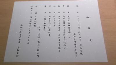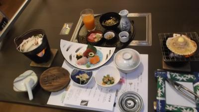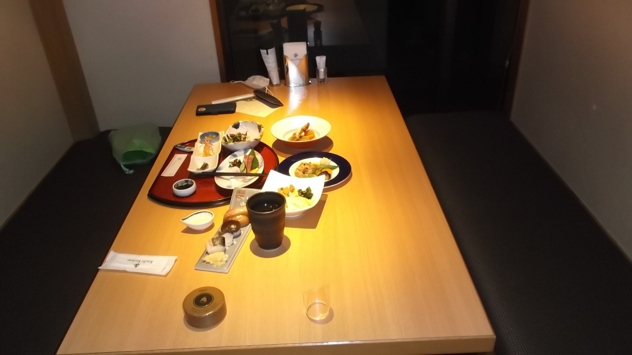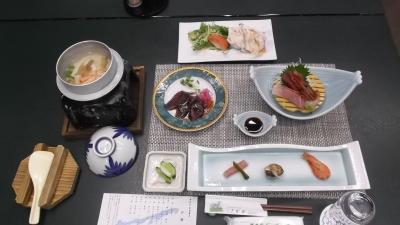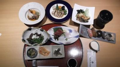 楽しみな夕食、「グレードアップ・土佐おもてなしプラン」前菜からデザート全9品、お造り三種盛り、カツオのタタキ、ウツボの唐揚げ、さらに土佐の田舎寿司など郷土食たっぷりの湯洋食になりました(一人個室でいただく)。朝食はきれいな弁当形式+αのヘルシーな食事でした。- 旅行時期