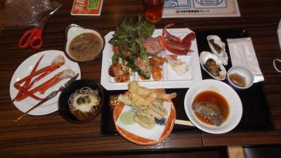 待望の夕食、今まで数多くのホテルでディナーをいただきましたが、5本の指に入るほどの超豪華バイキング、コロナ対策でビニール手袋をつけてのバイキング。カニ・カキ・刺身各種、出来立ての天婦羅・牛タン・ステーキ、他諸々、申し分なしです。
