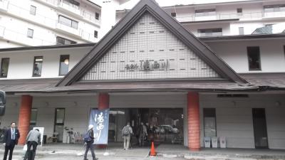 新年会を兼ねて男3人で宿泊しました。伊東園ホテルズグループで、例によって新宿からの往復無料送迎バス、2食付豪華バイキング+90分飲み放題、さらに温泉大浴場と露天風呂が完備された格安ホテルですが、館内は豪華で清潔感がありました。
