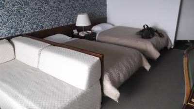 部屋はツインルームで比較的広いが隅々にほこりや鳥の羽が落ちていて不潔。屋上展望風呂は足が伸ばせて気持ちいいがロッカーが劣化していたり脱衣場の電気がつかずエアコンも作動しなかった。朝食は和定食でした。- 旅行時期