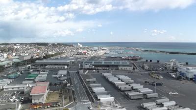 夕食は隣のレストラン「海望亭」で、朝食は8Fの見晴らしのいいレストランでいただく。夕食はハンバーグ、コロッケ&刺身定食でした。