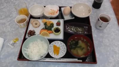 駅前の居酒屋で夕食を取りホテルへ。駅から200mの至近距離。すぐ近くにコンビニあり、部屋は比較的ゆったりしていて満足、WIFI完備だがウォッシュレットでないのが残念であとは普通のビジネスホテルでした。朝食は小皿・小鉢に食材が取り分けられぴ゛身でした。