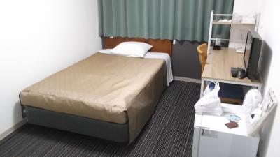 福知山駅北口から徒歩3分(300m)、館内はとても綺麗で落ち着いた雰囲気、部屋も清潔感にあふれ、特にユニットタイプのバス・トイレ・洗面は白と壁の茶色がよくマッチしている。ベッドはダブルサイズで大きい。