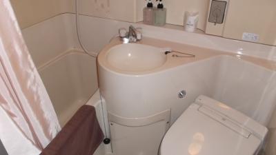 部屋は比較的広く、ダブルサイズのベッドが嬉しい。バス・トイレ・洗面はユニットでちと狭い感じ。ウォッシュレットやWIFI完備。