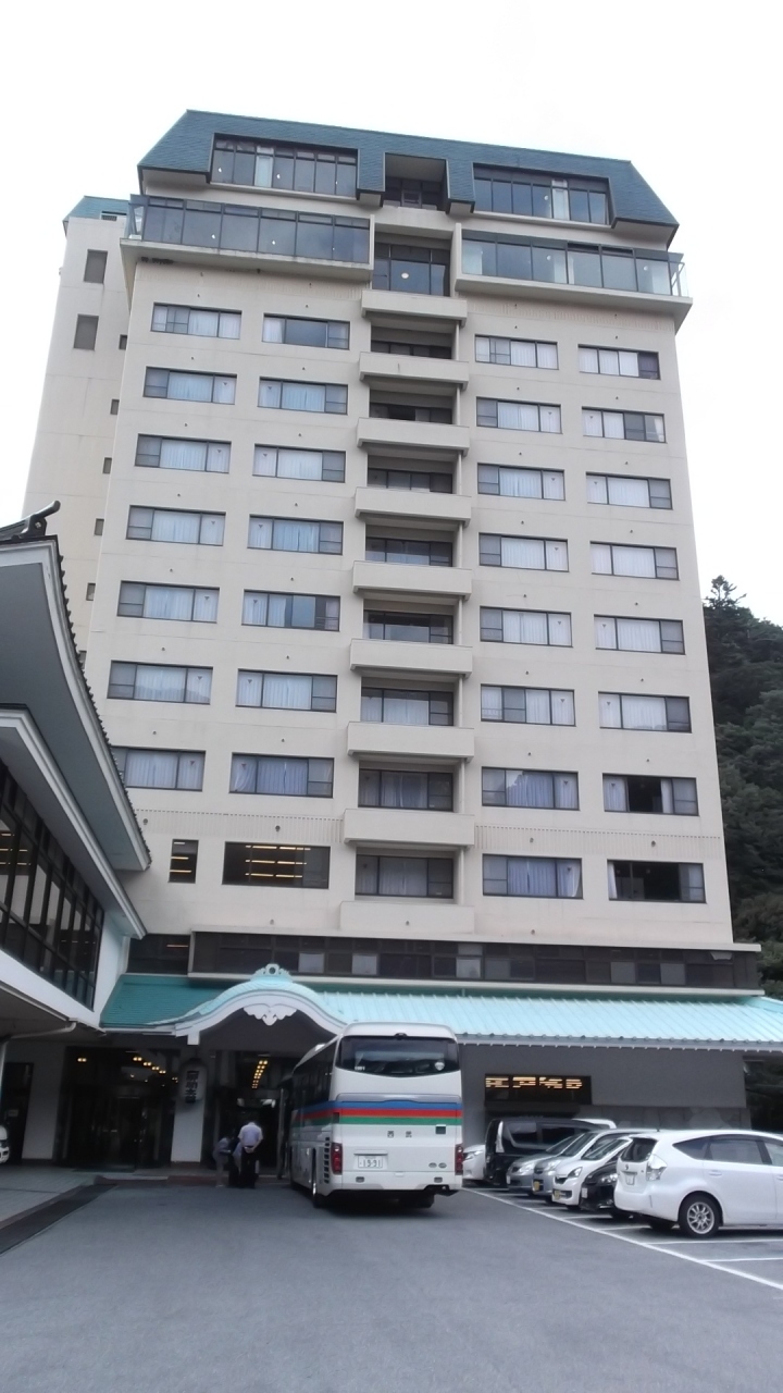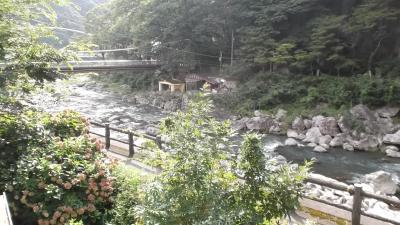 旅仲間・飲み仲間4人で新宿発(9:40)の無料送迎バスで川治温泉・一柳閣へ(14:00頃到着)。すぐに入室でき、早速温泉へ。展望風呂は花の館12F、露天風呂は柳の館5Fと分かれているがいずれも川の畔でとても風情ある適温の温泉で癒されました。