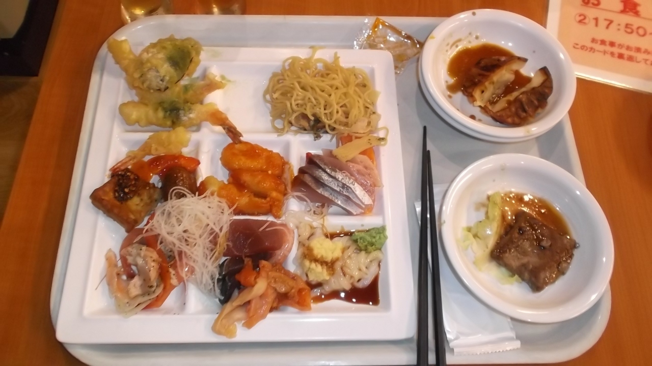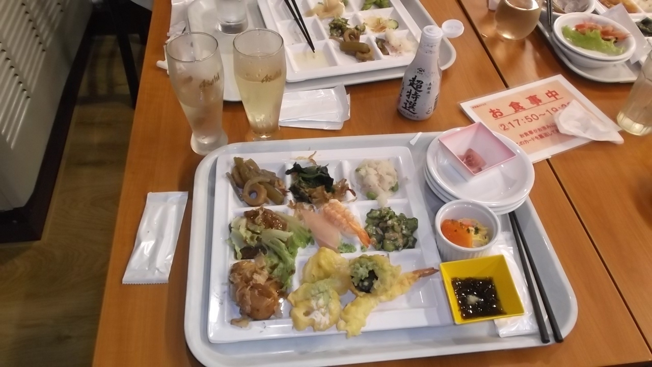 夕・朝食はいずれもバイキング、時間制であるものの食事テーブルは余裕があり待つこともなく着席でき、思い思いの料理を数多く味わうことができるし、ビール・日本酒・ハイボール・ワイン等90分飲み放題。