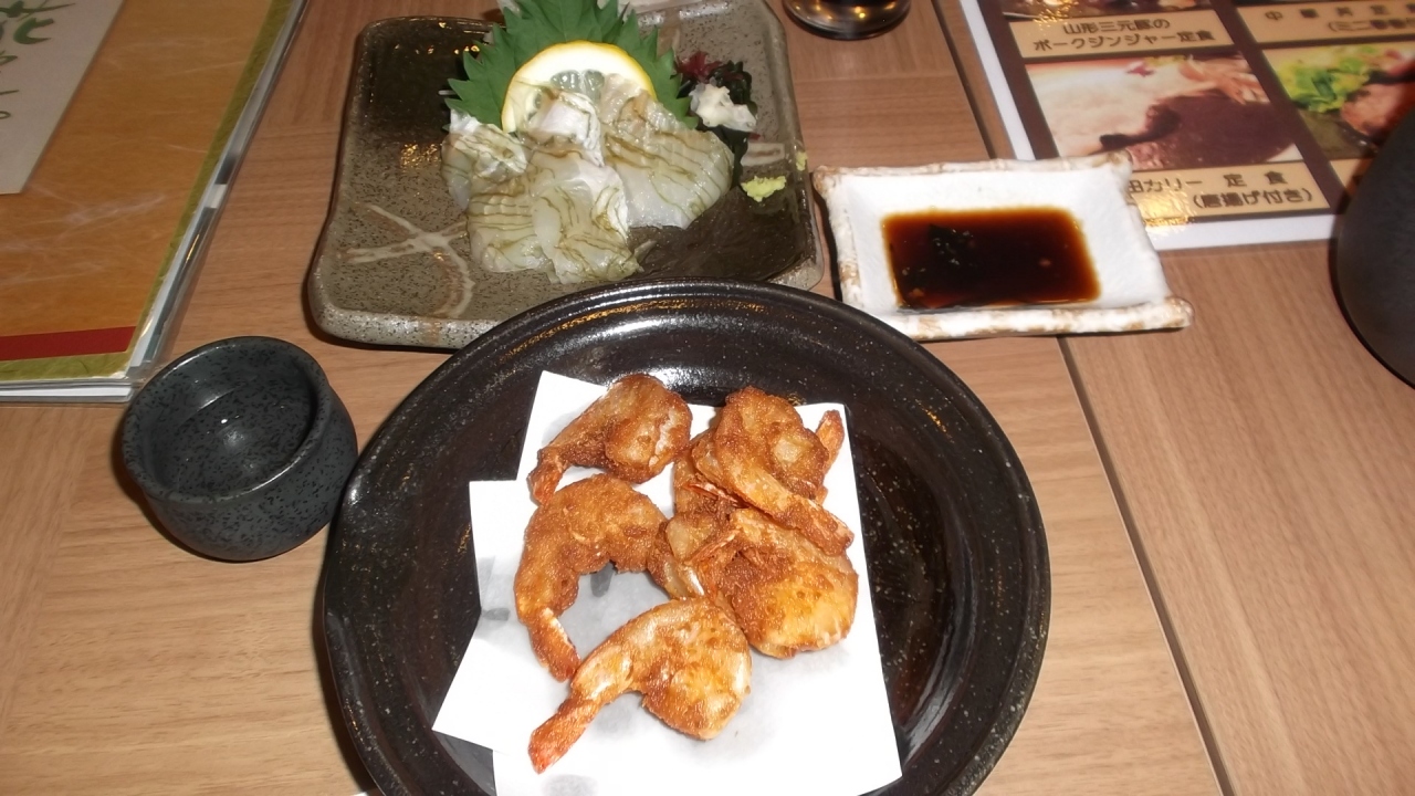 1泊朝食での予約でしたが、夕食は館内のレストラン「花々亭」で三陸産ヒラメ昆布&ガーリックシュリンプそしてメインは中華丼定食をいただき、とても美味でした。- 旅行時期