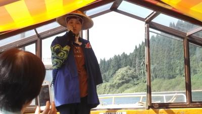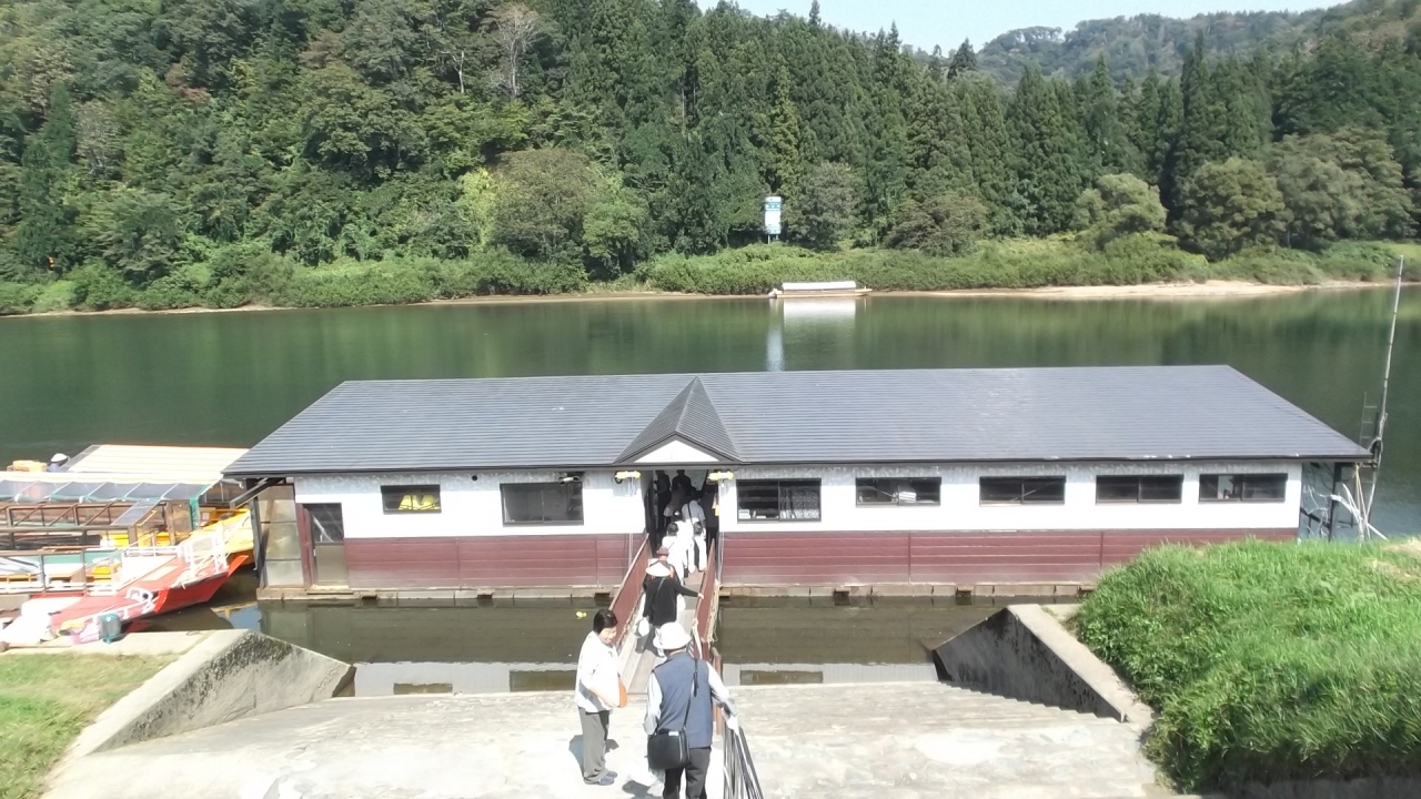 乗り場の戸澤藩船番所から約1時間の女性船頭さんの名ガイドでゆったりのんびりの舟下りでした。途中、川鵜やサギのお出迎え、また大滝、仙人堂鳥居、白糸の滝などの観光スポット、それに船頭さんの真室川音頭や最上川舟唄の名調子で素晴らしい舟旅になりました。