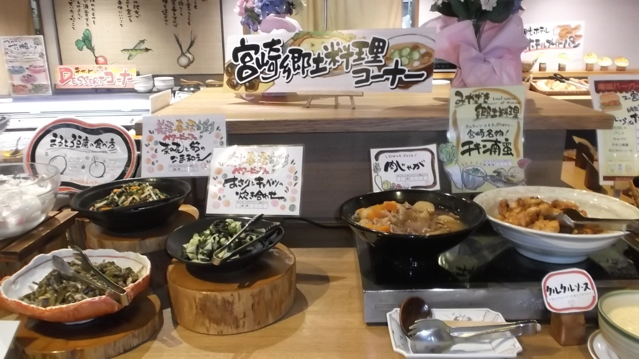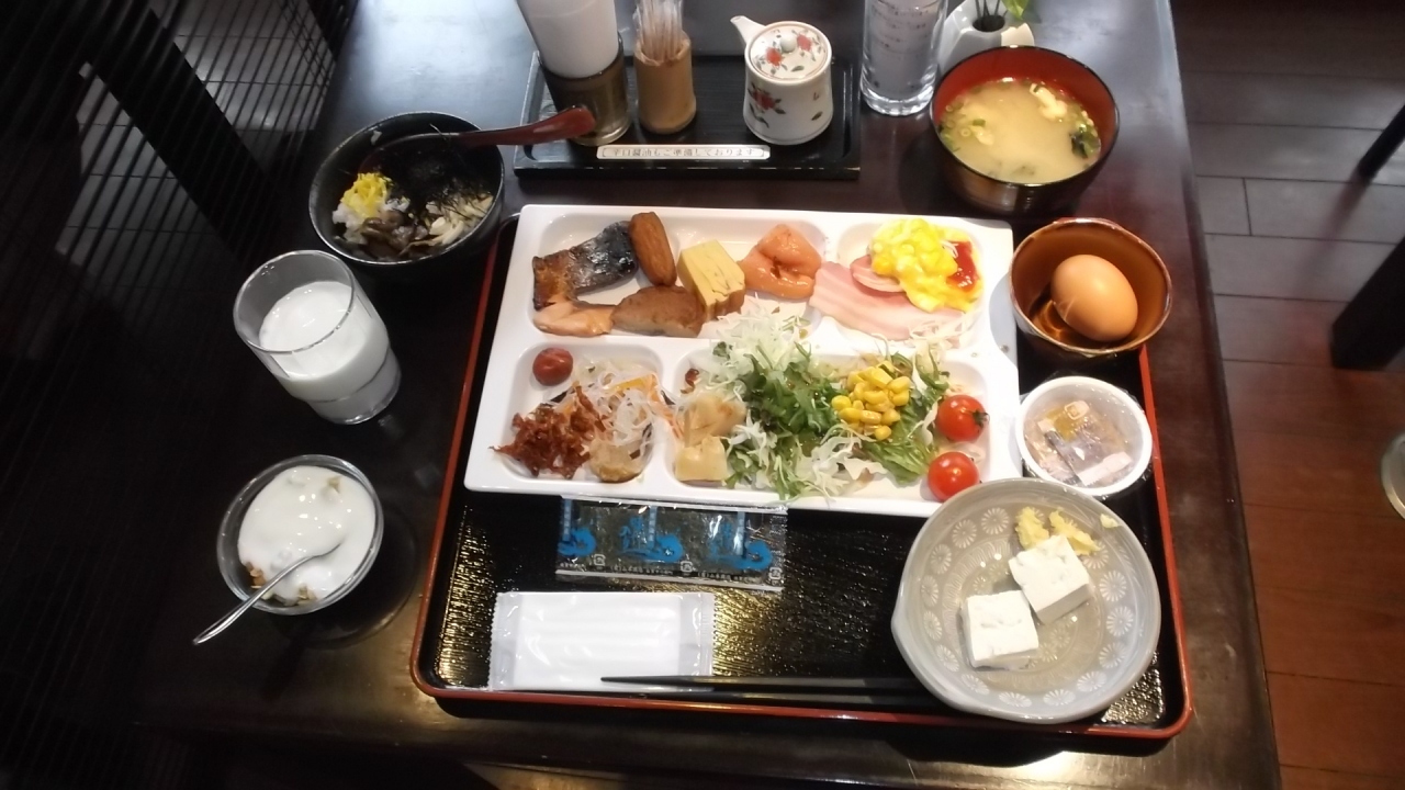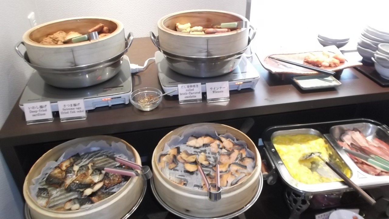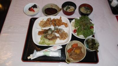 初日の夕食はお任せ定食で少々寂しい思いをしたが、翌日からはバイキングになり品数も増えた。