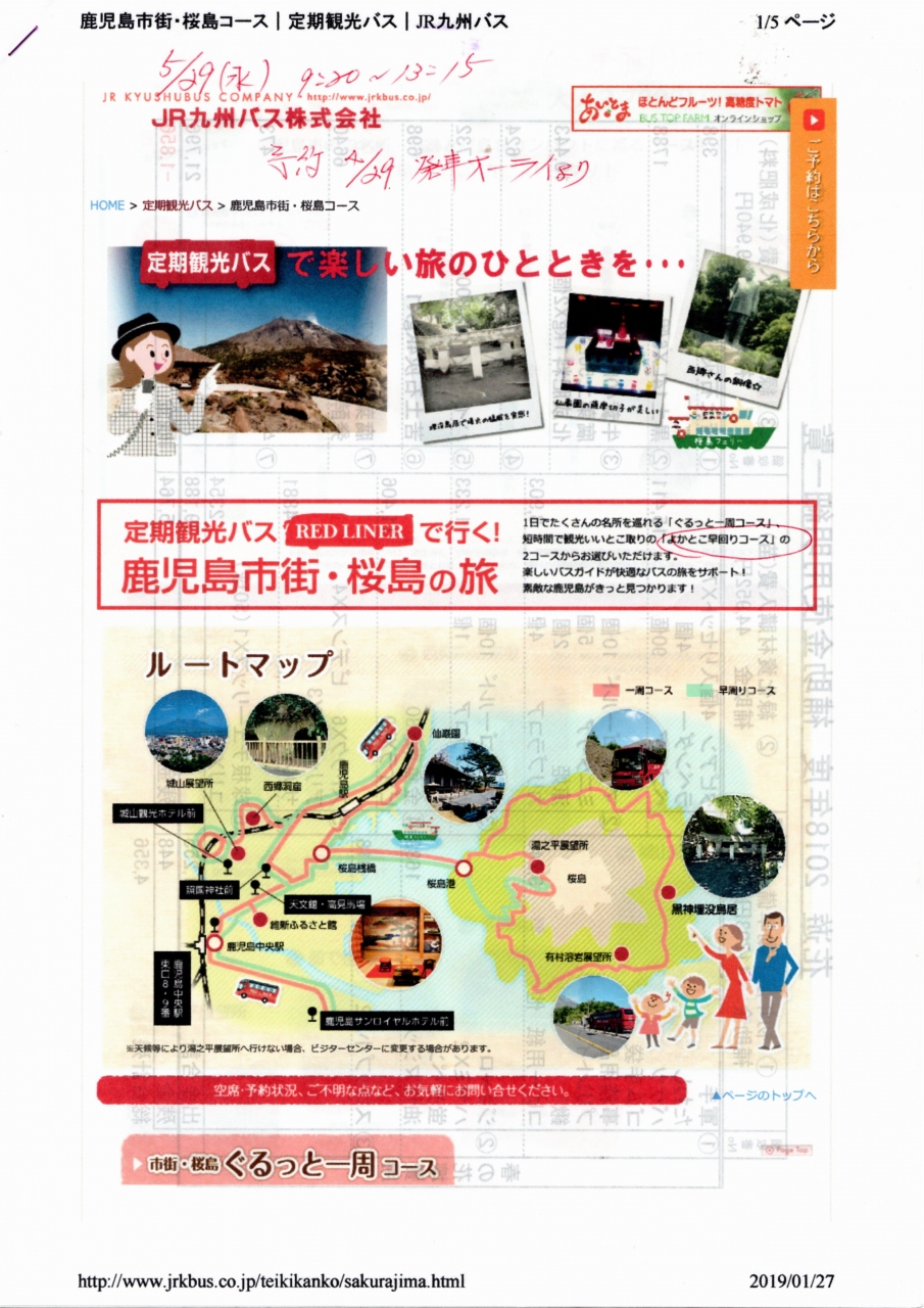 男一人旅で利用しました。コースは①市街・桜島ぐるっと一周コース、②よかとこ早回りコース(約4時間)があり、私は②を利用しました(2780円)。主な乗降場所は、鹿児島中央駅・天文館など4~5カ所あります。車窓見学も数カ所ありますが、下車観光もあり市街と桜島が十分楽しめました。