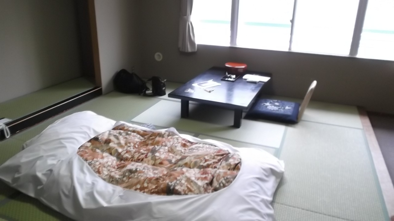 フロントで詳細な説明を聞いて部屋へ。10畳和室の広々とした部屋で寛げる。布団はすでに敷かれてあった。