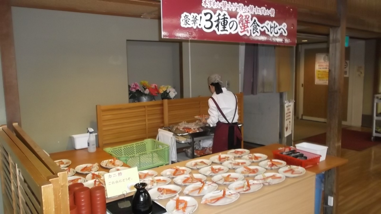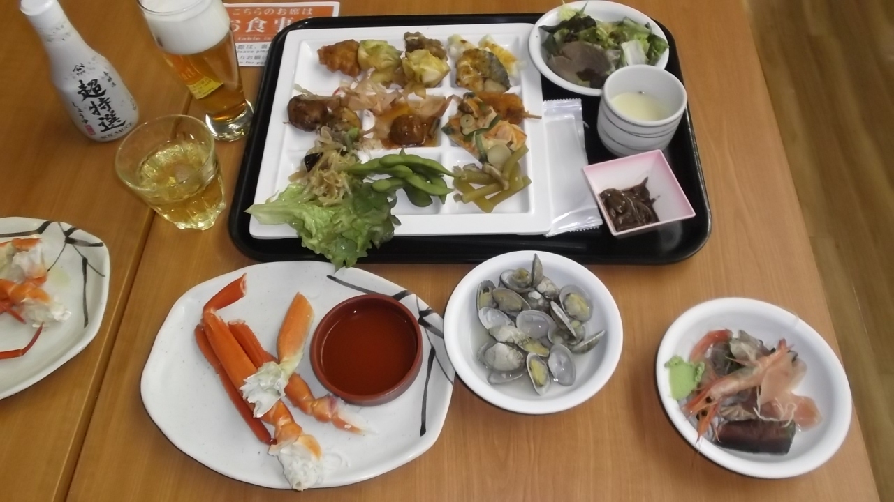 待望の夕食は、かに・天婦羅・刺身、他豊富な食材に90分飲み放題。これで8500円(現地⇔池袋無料バス付)。信じられない破格のお値打ちでした。- 旅行時期