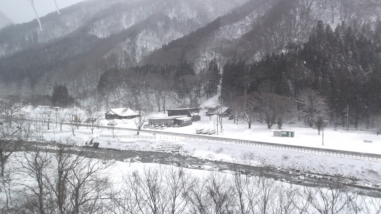 水上駅からホテル送迎バスを利用。時折、小雪が断続的に降り続いている。