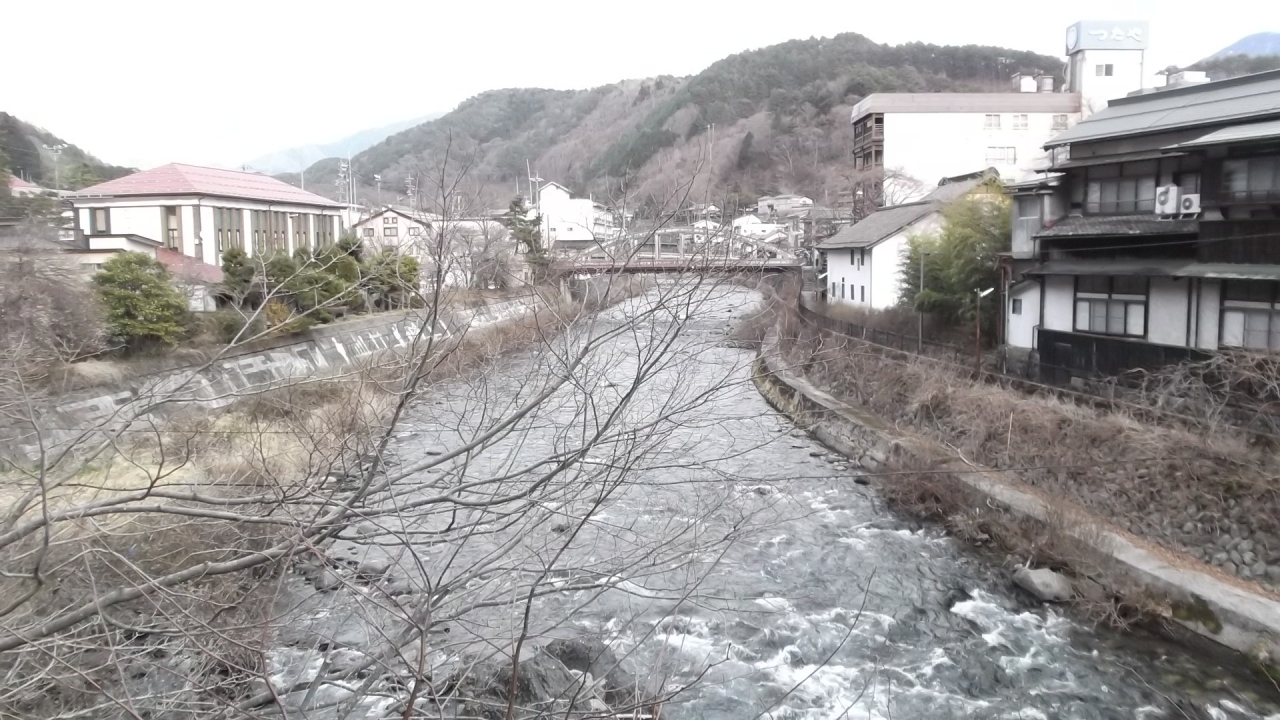 まず駅近くにあるスーパーマーケットでアルコール買い出し。木曽福島駅から徒歩20分(約1Km)、風情ある川沿いを歩きながらホテルへ。山村代官屋敷や福島関所跡に近い場所にある。