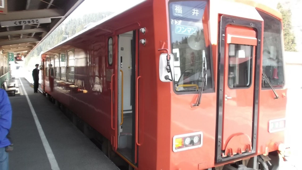 北陸・鉄道温泉ひとり旅の5日目、宿泊地の市波駅~九頭竜湖駅~福井駅間に乗車いました。1~2両編成のセミクロスシートで乗客はまばらでした。