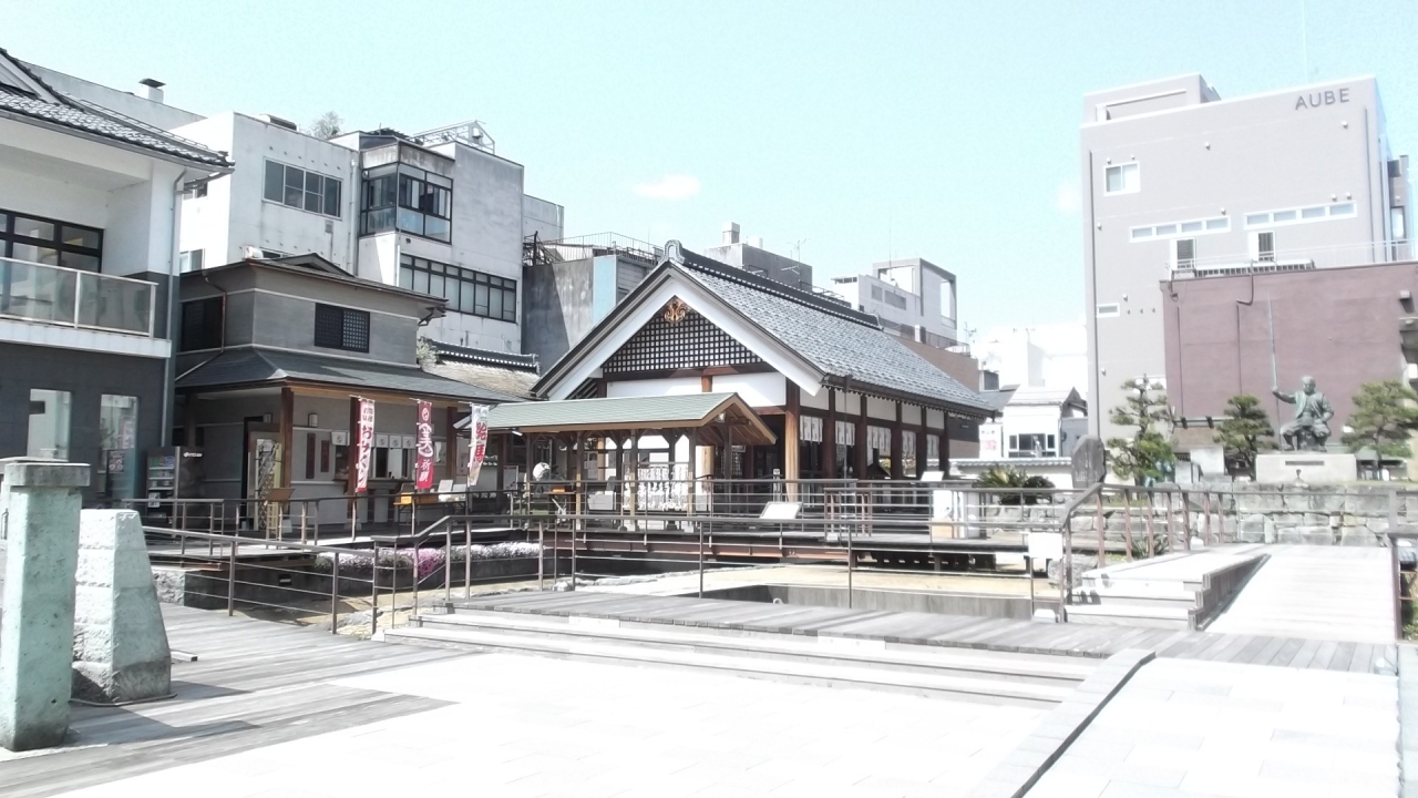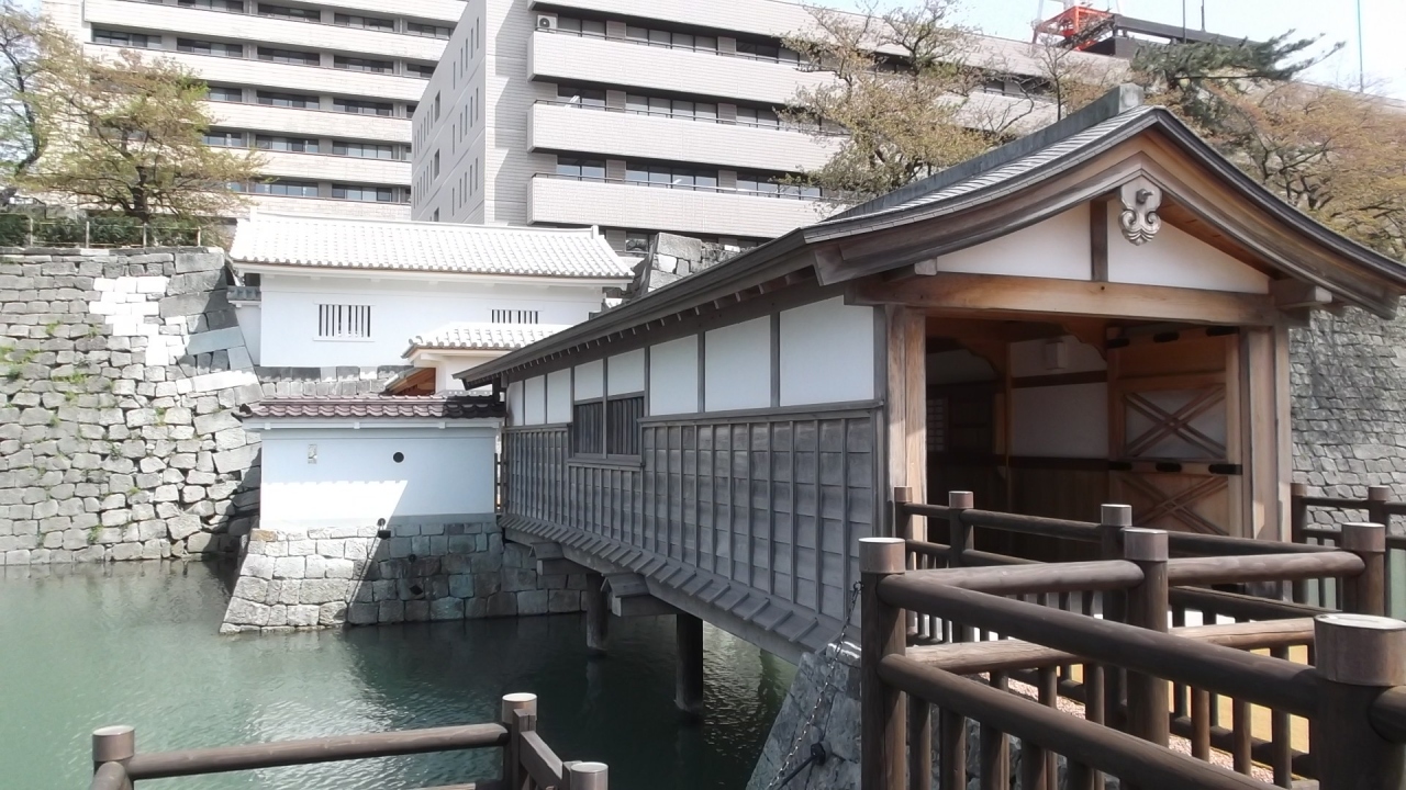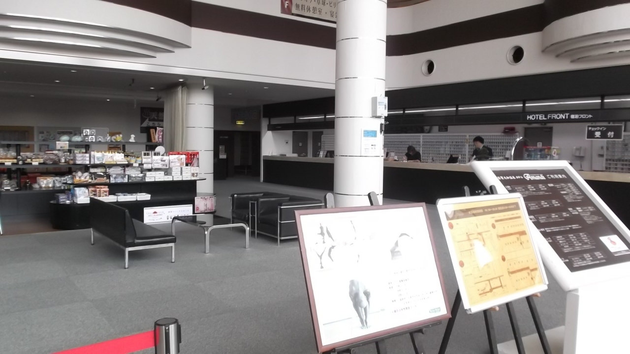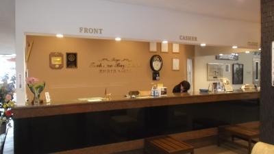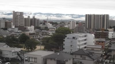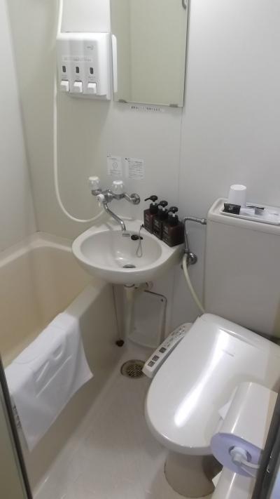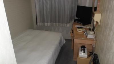 熊本空港からリムジンバスで市内へ。水前寺公園下車予定(600円)だったが、土砂降りの雨で見学を諦め一つ手前の県庁前で下車。進行方向逆に200mほど戻ると道路際にホテルあり。シングルBの11㎡でかなり狭い感じ。