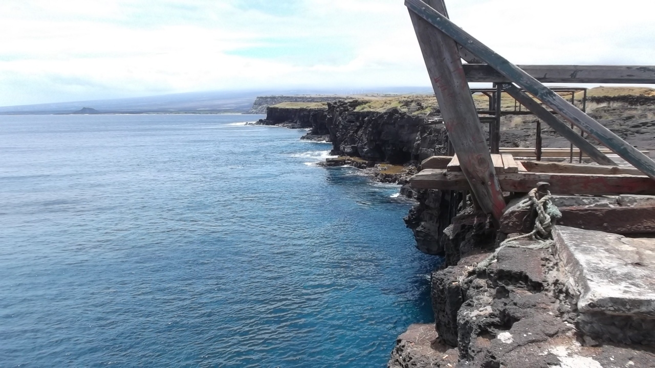 黒砂海岸見学後立ち寄りました。国道11号からわき道を入りかなり走ると到着します(途中グリーンサンドビーチに行くシュトルカーを運営している業者に呼び止められましたが断りました)。ここは断崖絶壁の景勝地でハワイ島のみならずアメリカ合衆国の最南端とのこと。大昔はここでも溶岩が海に流れ込んでいたのかも・・・。