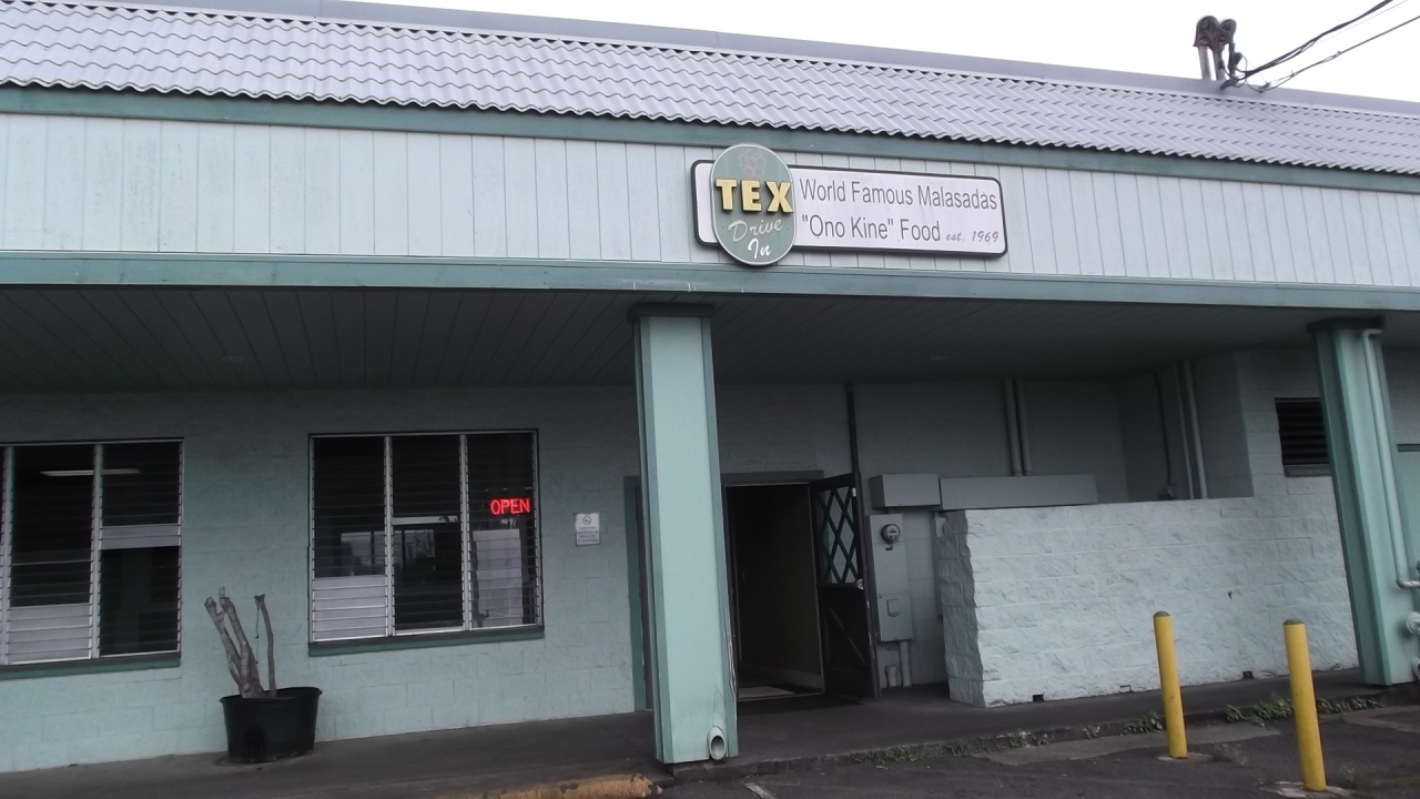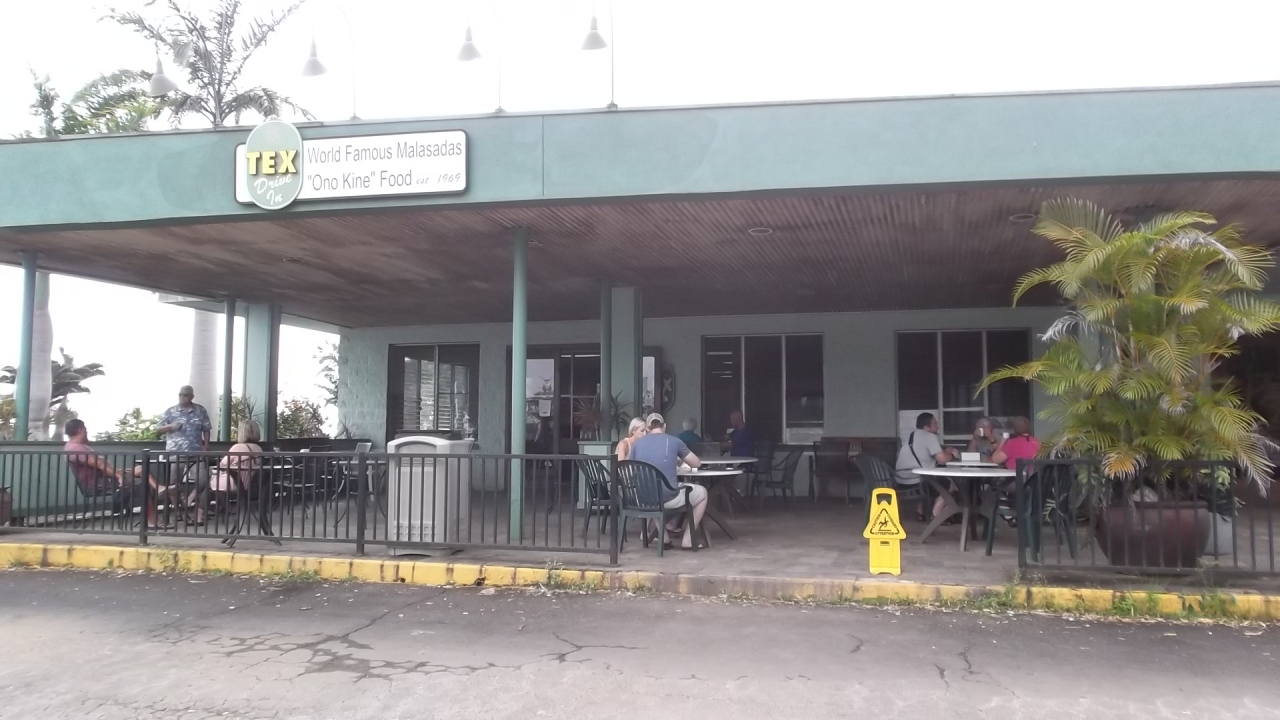 ハワイ島北東部のワイピオ渓谷見学後に立ち寄りました。「TEX テックスドライブイン」という名称で国道19号の沿道にあります。ここの呼び物は何と言っても「マラサダ+フィリング」。人気の味はババリアンクリームそれからマンゴーとグァバで最高にうまい。女性の作業中の様子も観察できます。
