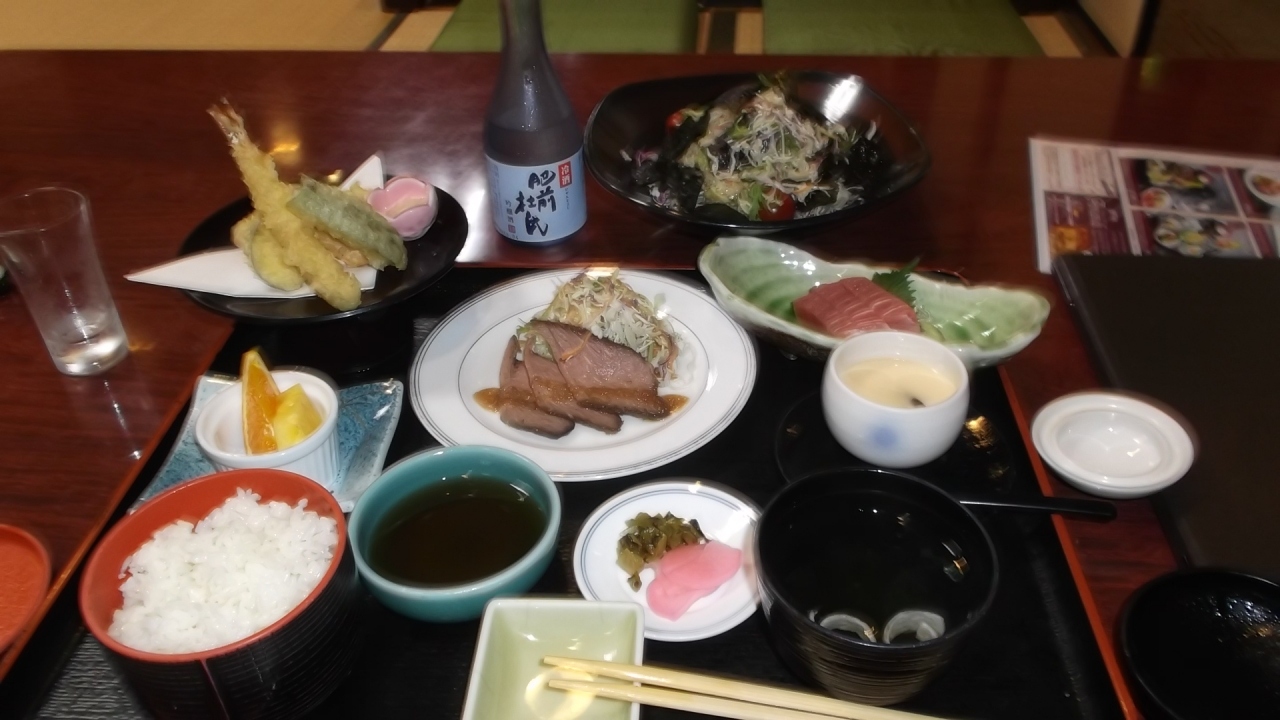 1泊朝食付プランなので、夕食は和食の食事処・熊野川と洋食レストランがあり、その場で注文可能。和食処・熊野川で、熊野川御膳と韓国サラダ、日本酒冷酒でとても美味なる夕食をいただきました。- 旅行時期