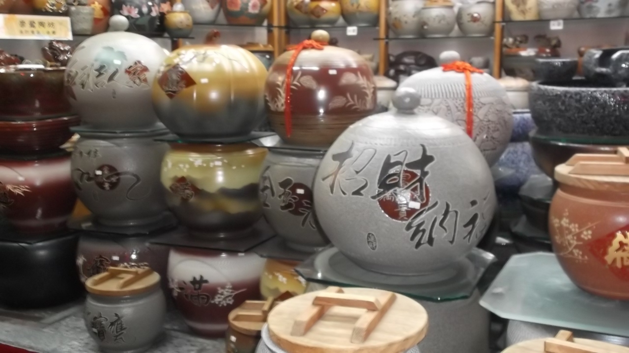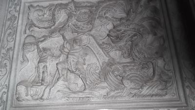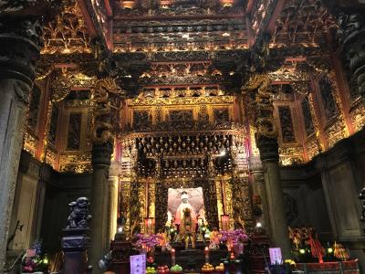 パッケージツアーで最初に訪れた老街(下町)。とてもみごとな彫刻が鮮やかな古寺。
